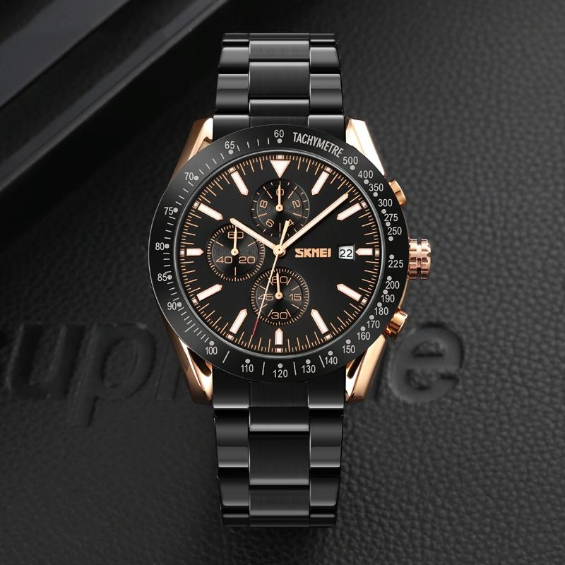 • 1 x 9253 Men Date Six Pin Stainless Steel Strap Quartz Watch