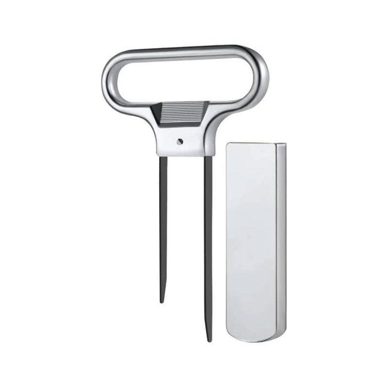 Made from durable chrome-plated metal, this wine opener features hardened spring steel prongs and a sleek ergonomic handle. The included protective sheath ensures safe storage and portability, making it ideal for home bars, restaurants, or wine lovers on the go.