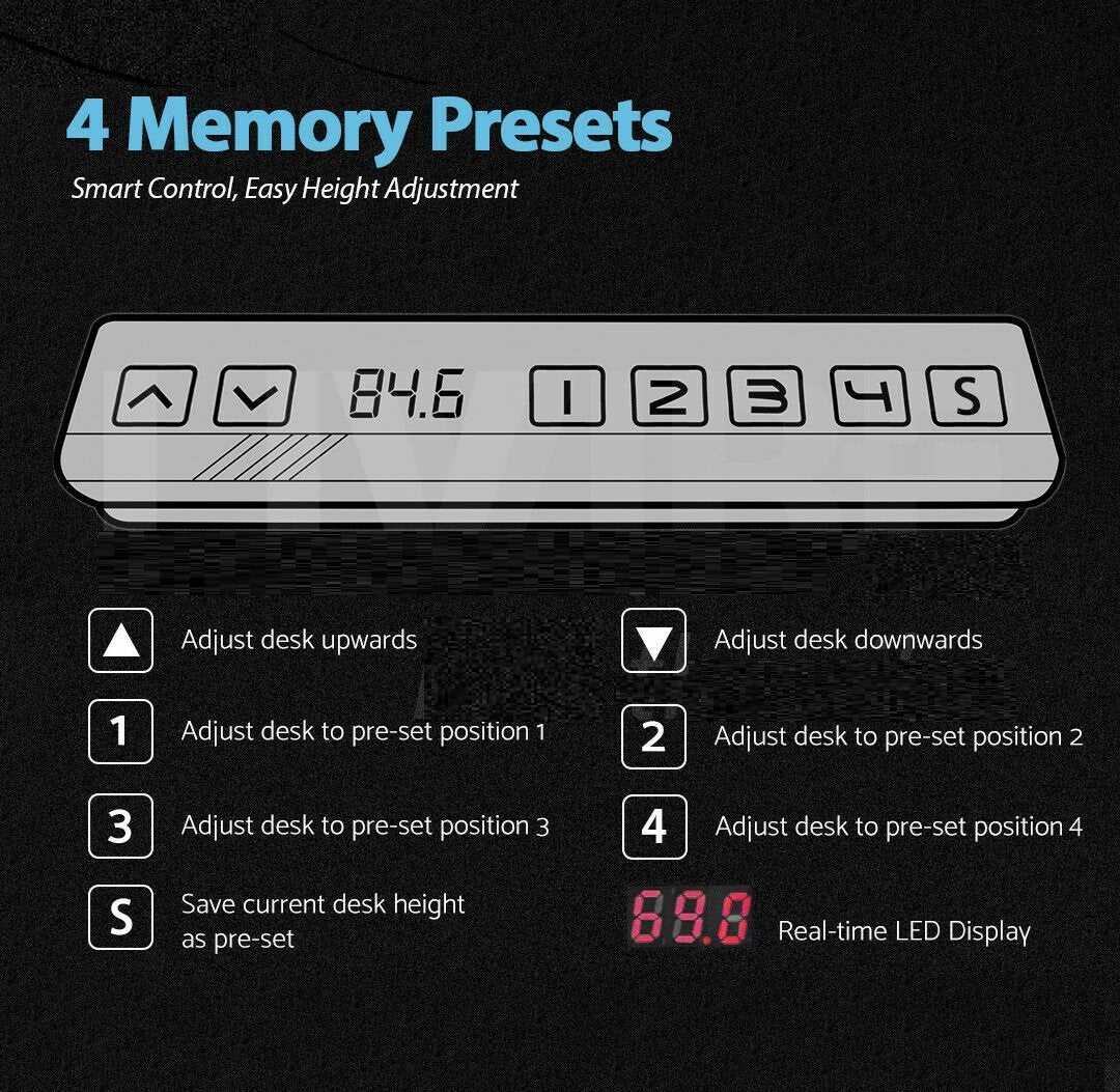 The innovative Amazingooh Motorised Height Adjustable Desk Frame has first and foremost been designed to provide comfort and health benefits. You can set up to 4 pre-set heights via the control panel, or adjust to any specific height, right up to 125cm (Dual motor). Customized with your own desktop, the frame has an adjustable width suitable for desktops between 110-190cm.