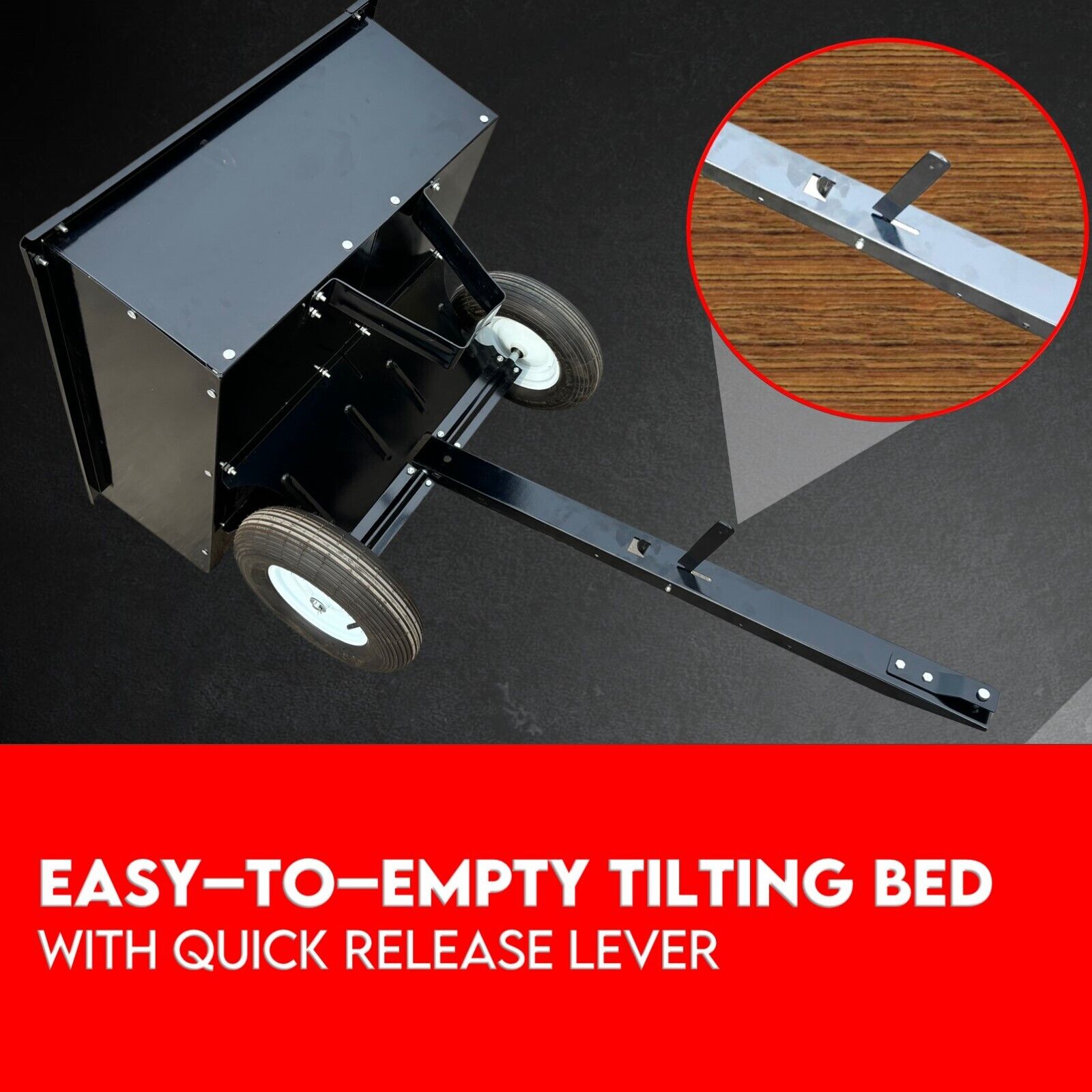 Using this cart is easier than ever, thanks to a universal hitch that easily adapts to any lawn tractor. The removable tailgate makes it easier to load and unload. The latch is spring loaded so simply return the bed to the upright position to secure it and you’ll be on the move again in no time.