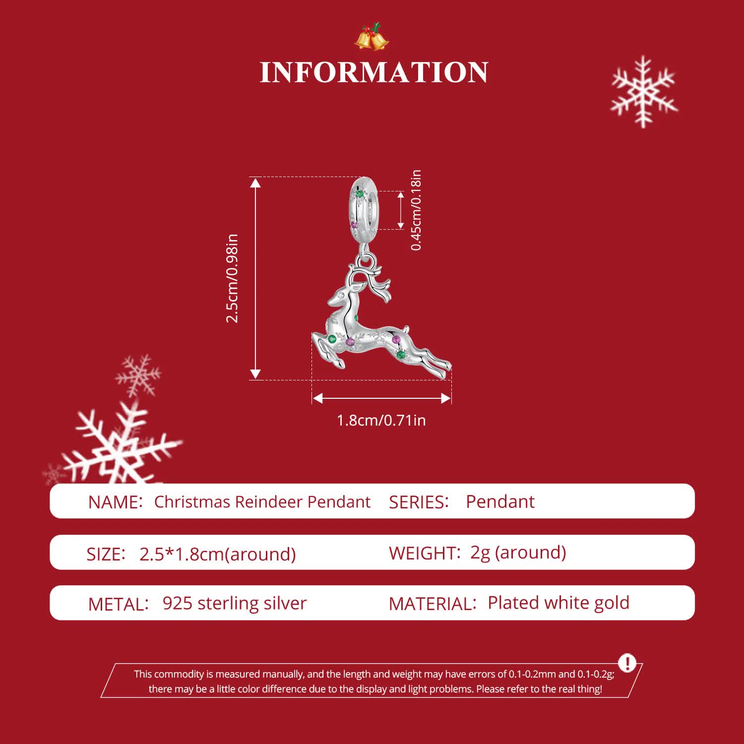 Sterling Silver Reindeer Charm – Festive Christmas Pendant with Colorful Accents (weighs approximately 2g)