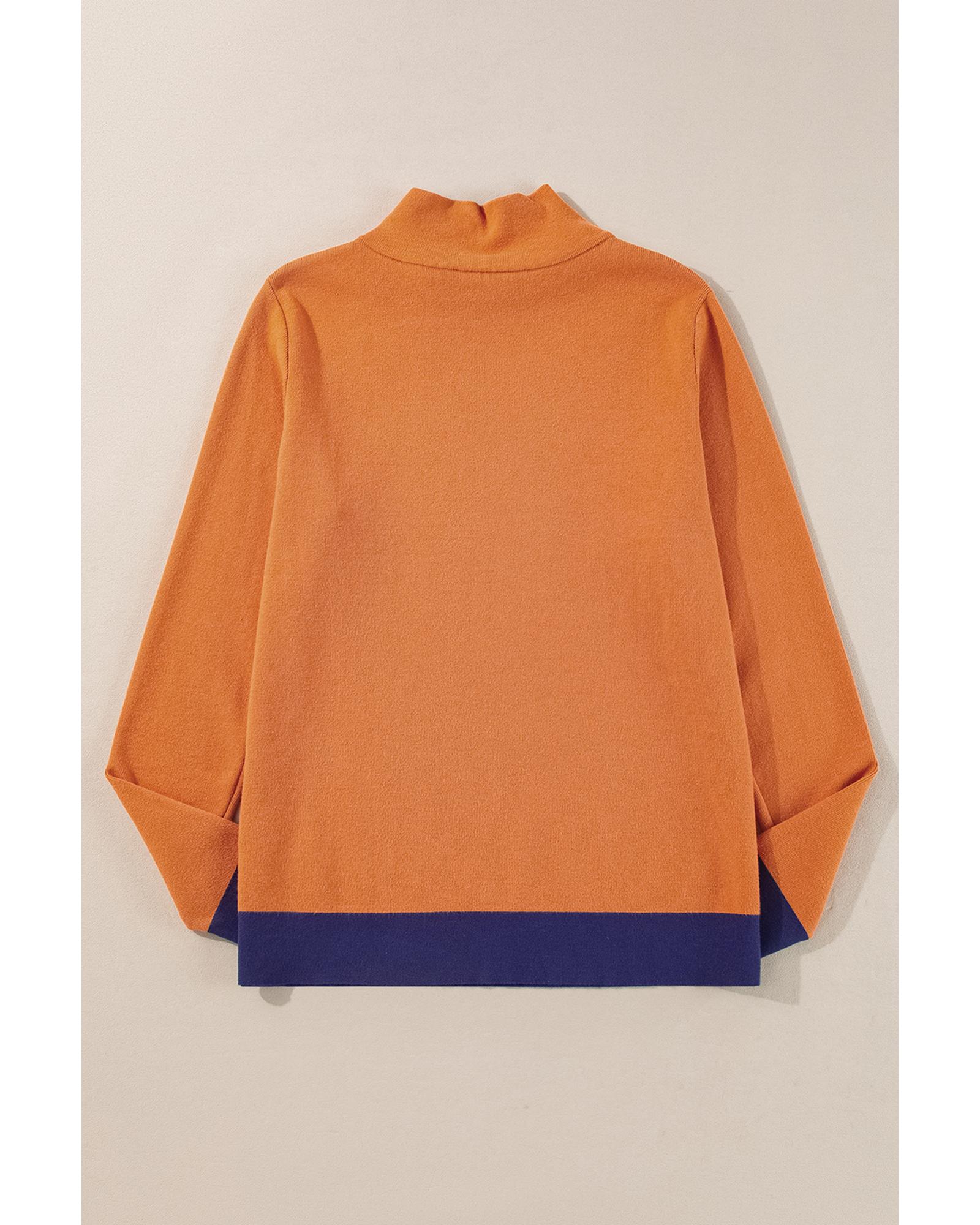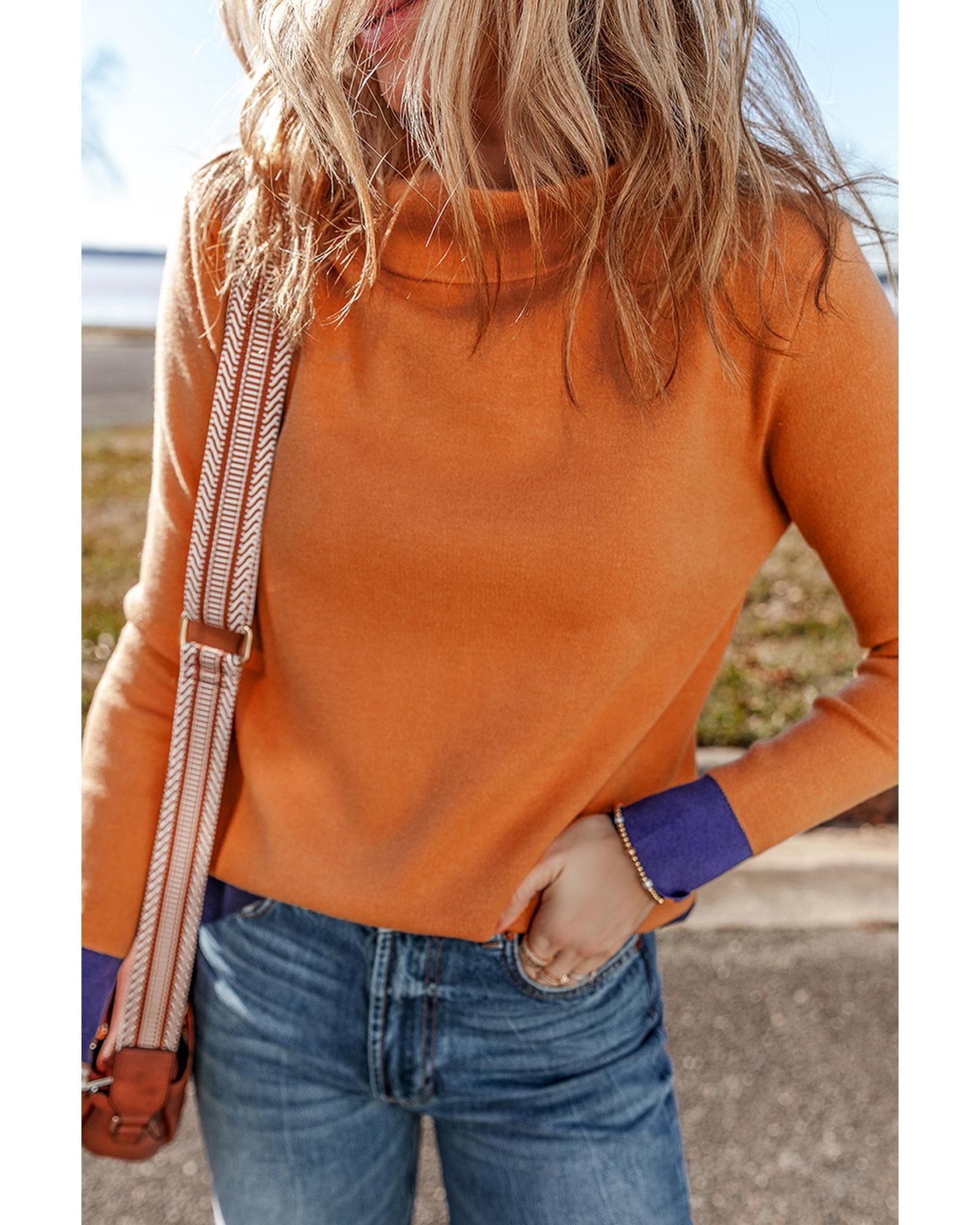 Straw Yellow Color Contrast Edge Mock Neck Slim Fit Sweater – L