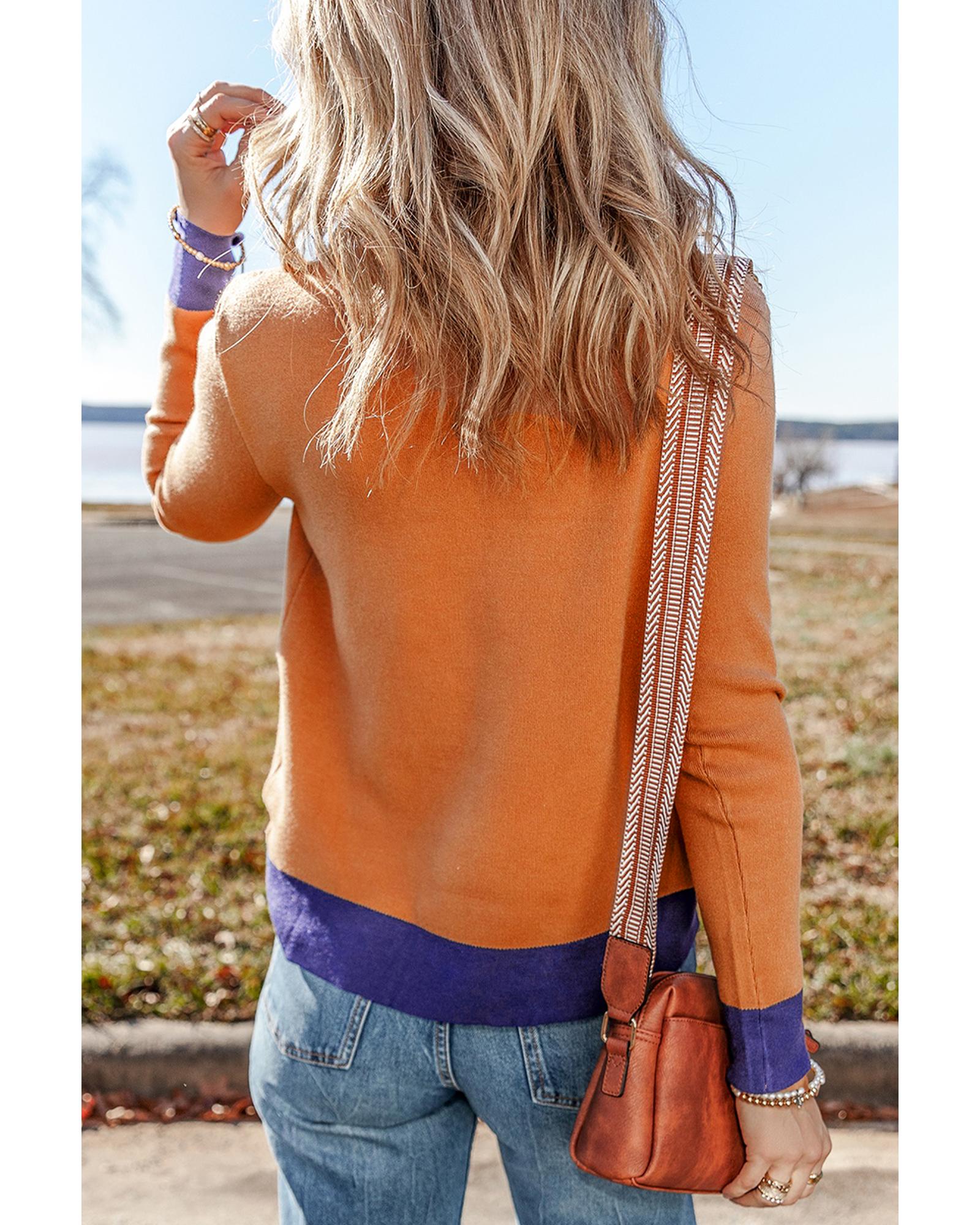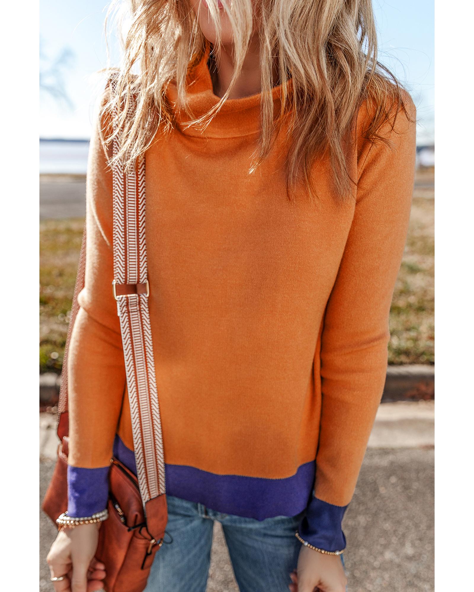 Straw Yellow Color Contrast Edge Mock Neck Slim Fit Sweater – M
