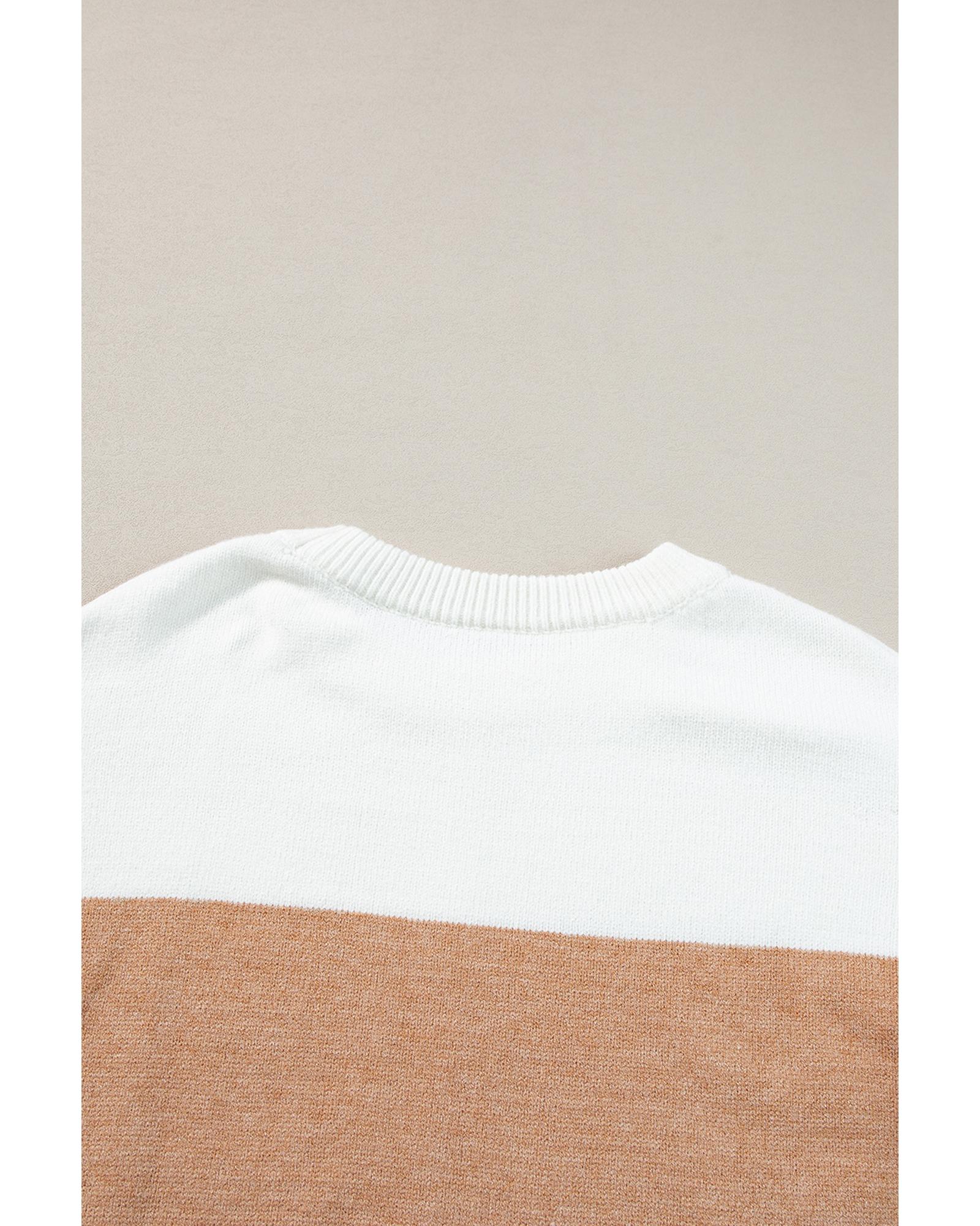 Straw Yellow Colorblock Ribbed Trim Round Neck Sweater – M