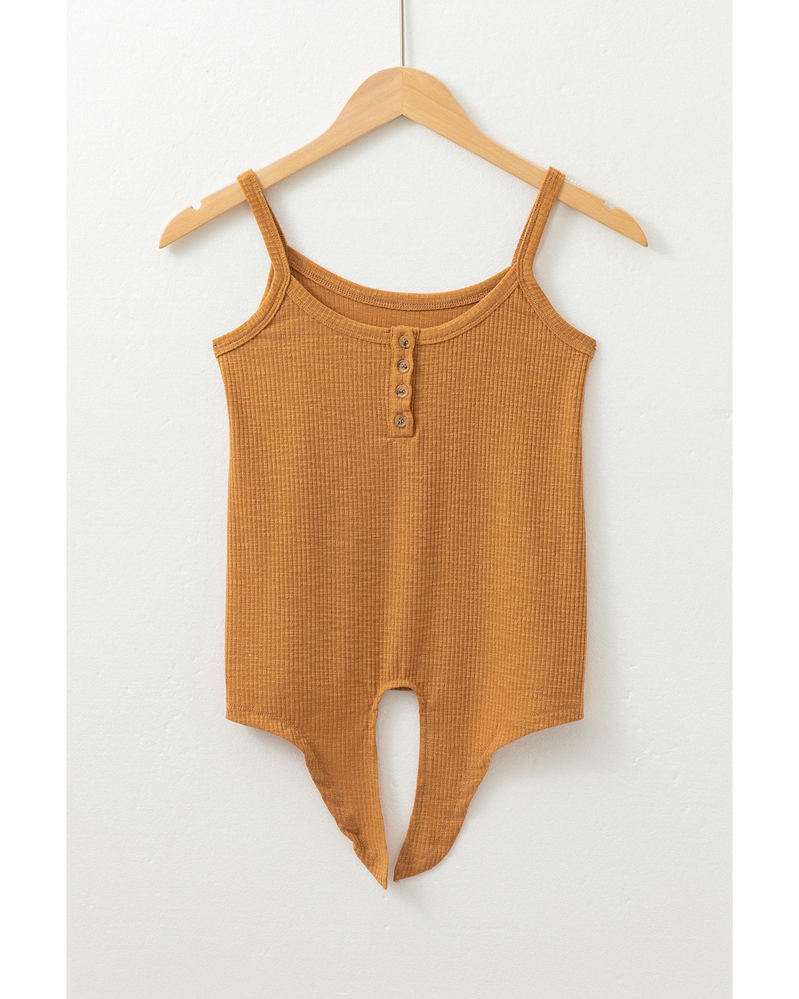 Straw Yellow Ribbed Front Knot Buttoned Thin Strap Tank Top – XL