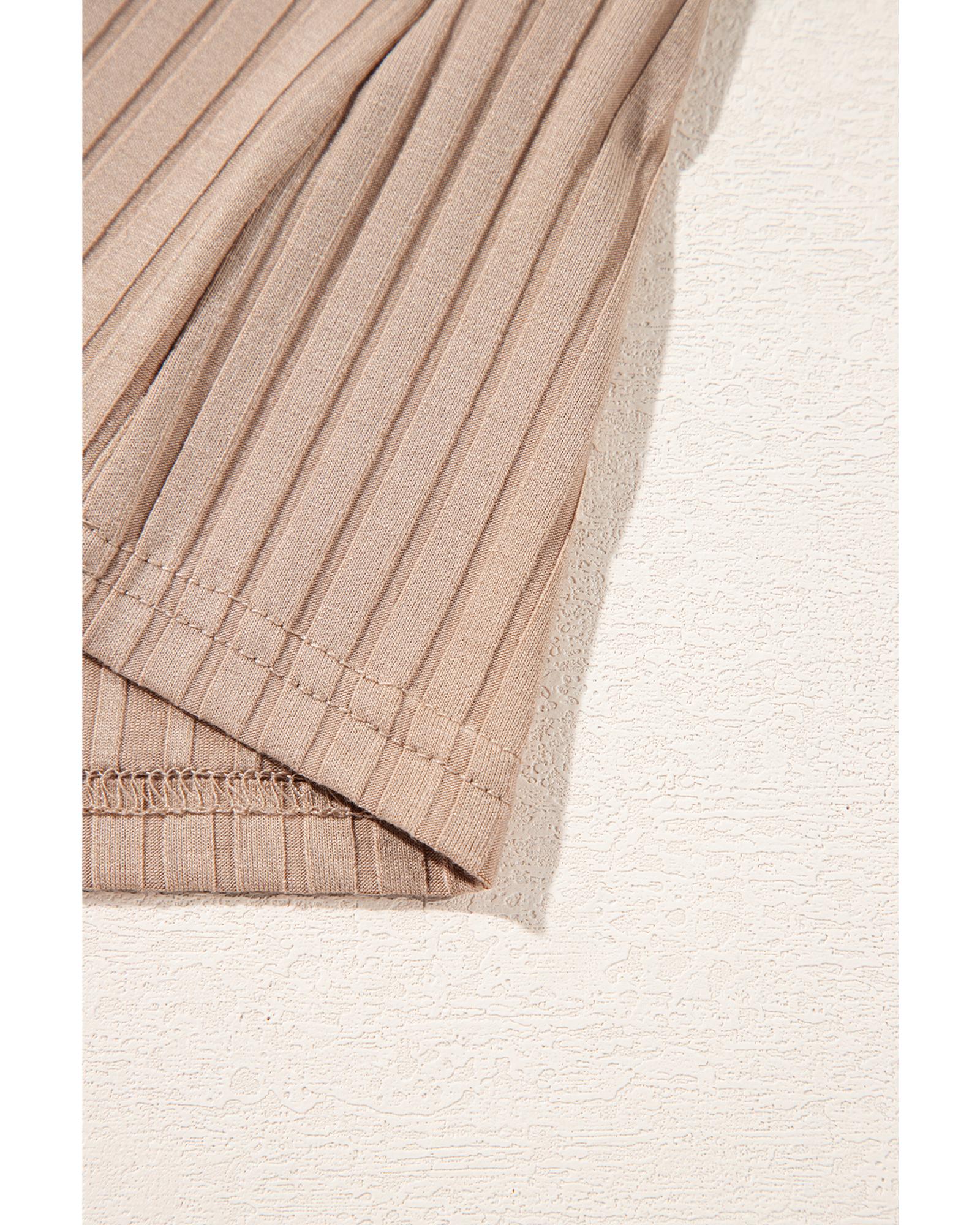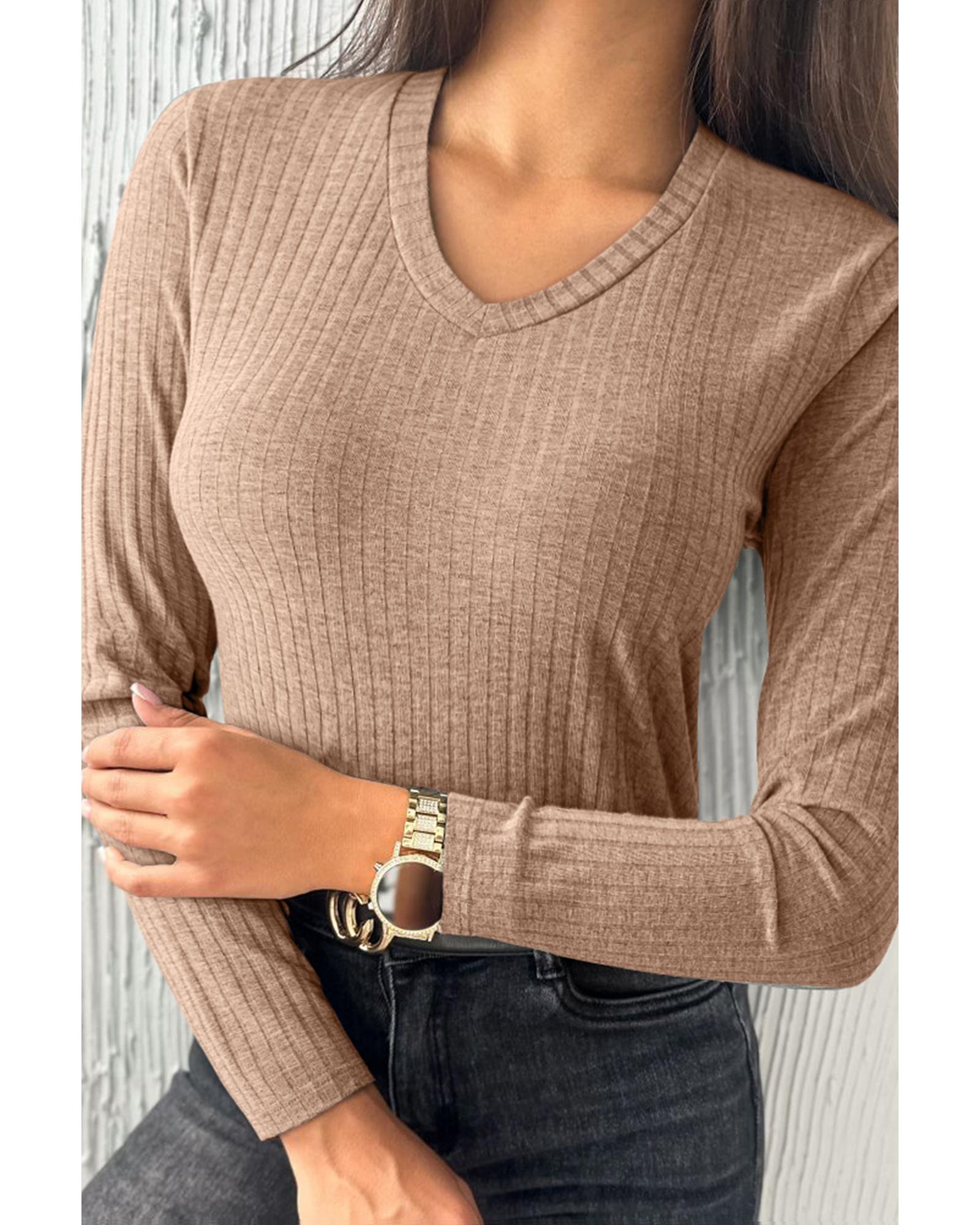 Straw Yellow Ribbed Knit V Neck Long Sleeve Slim Fit Top – XL