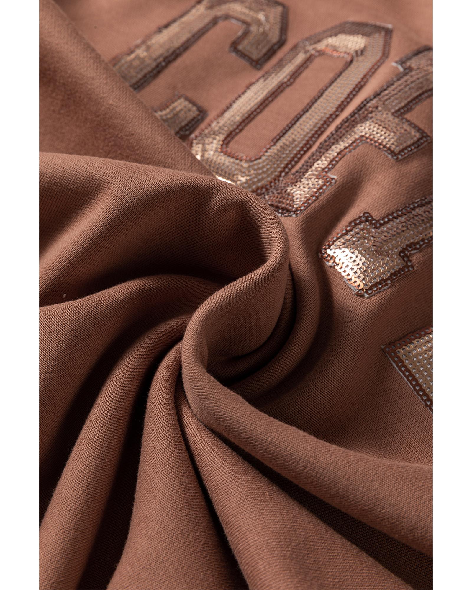 Straw Yellow Sequined COFFEE Loose Fit Sweatshirt and Shorts Set – XL