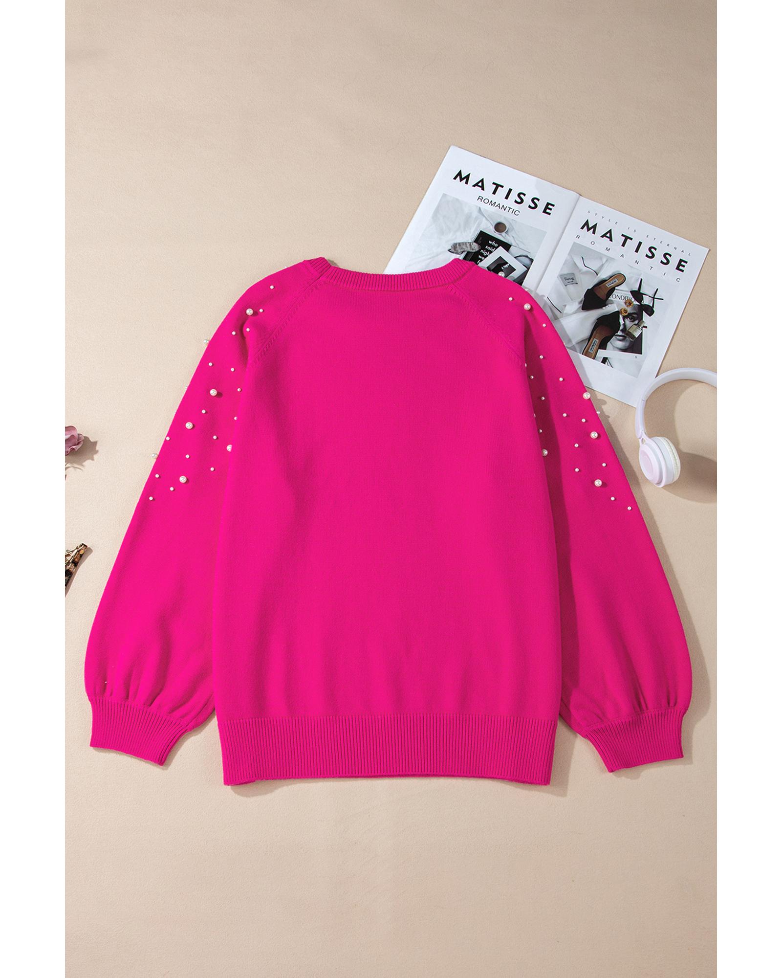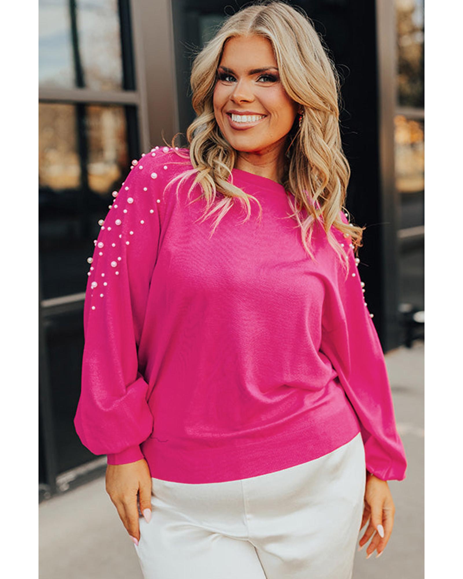 - Strawberry Pink Pearled Decor Raglan Sleeve Plus Size Sweater