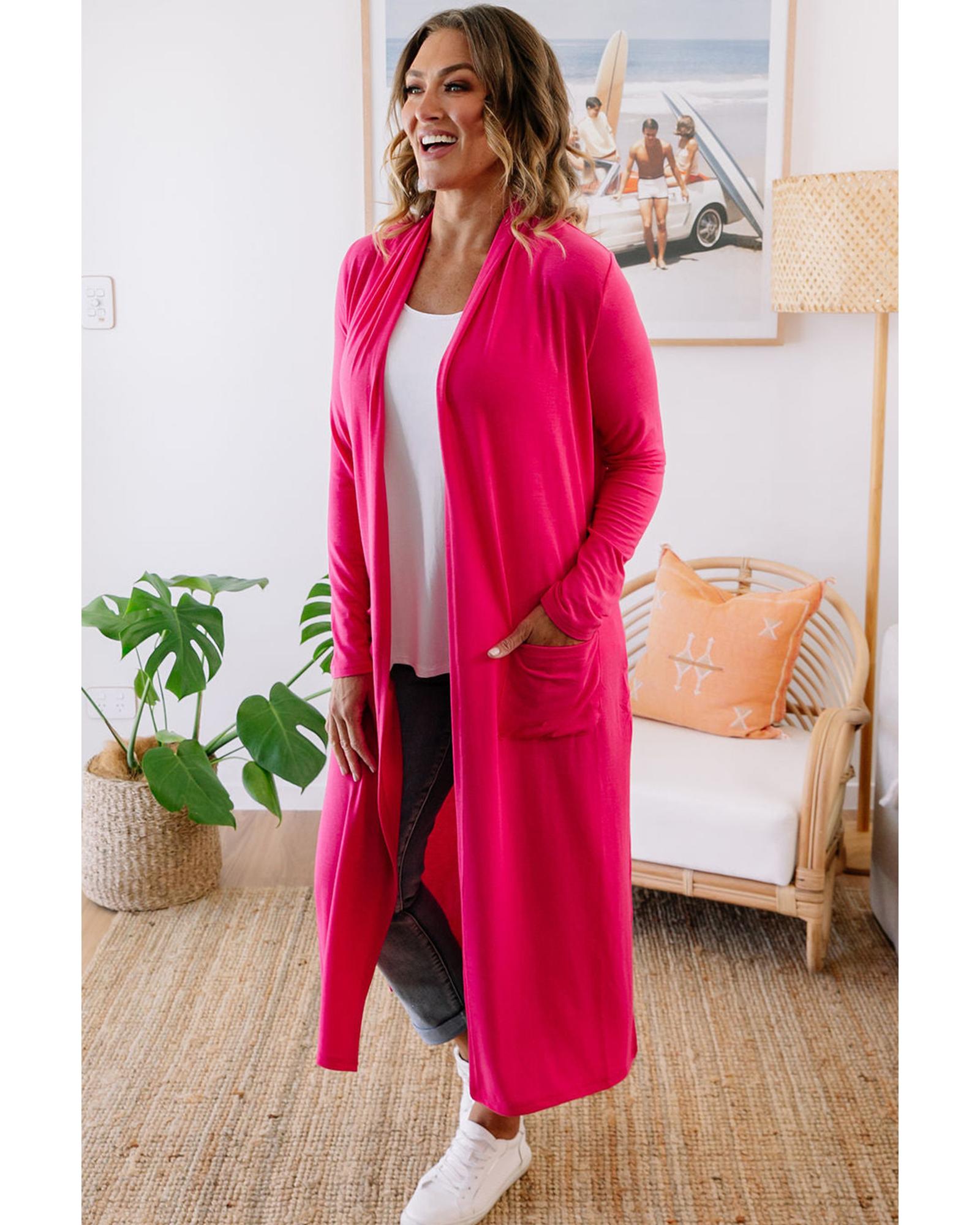 - Strawberry Pink Plus Size Side Split Pockets Duster Cardigan