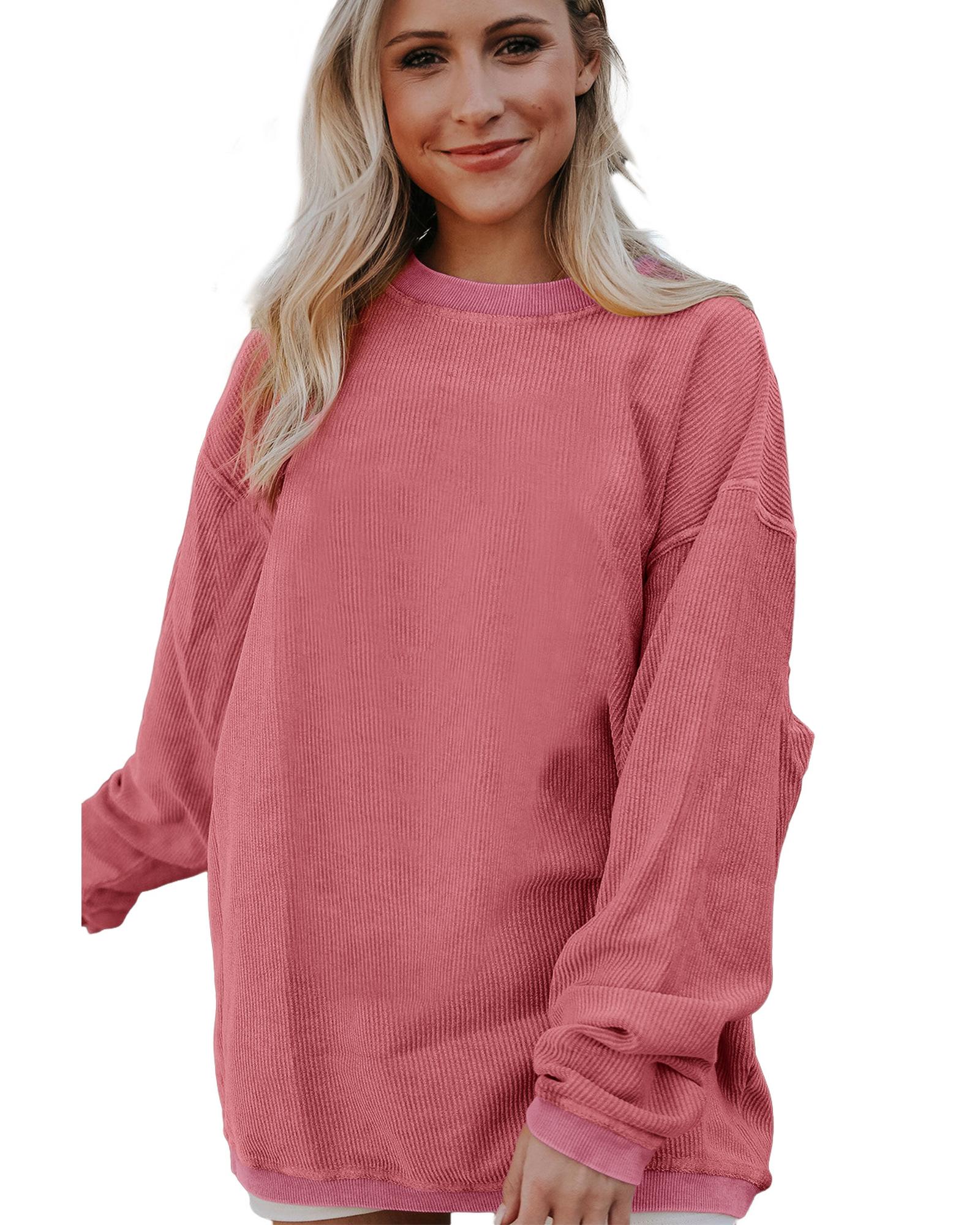 - Strawberry Pink Ribbed Corded Oversized Sweatshirt