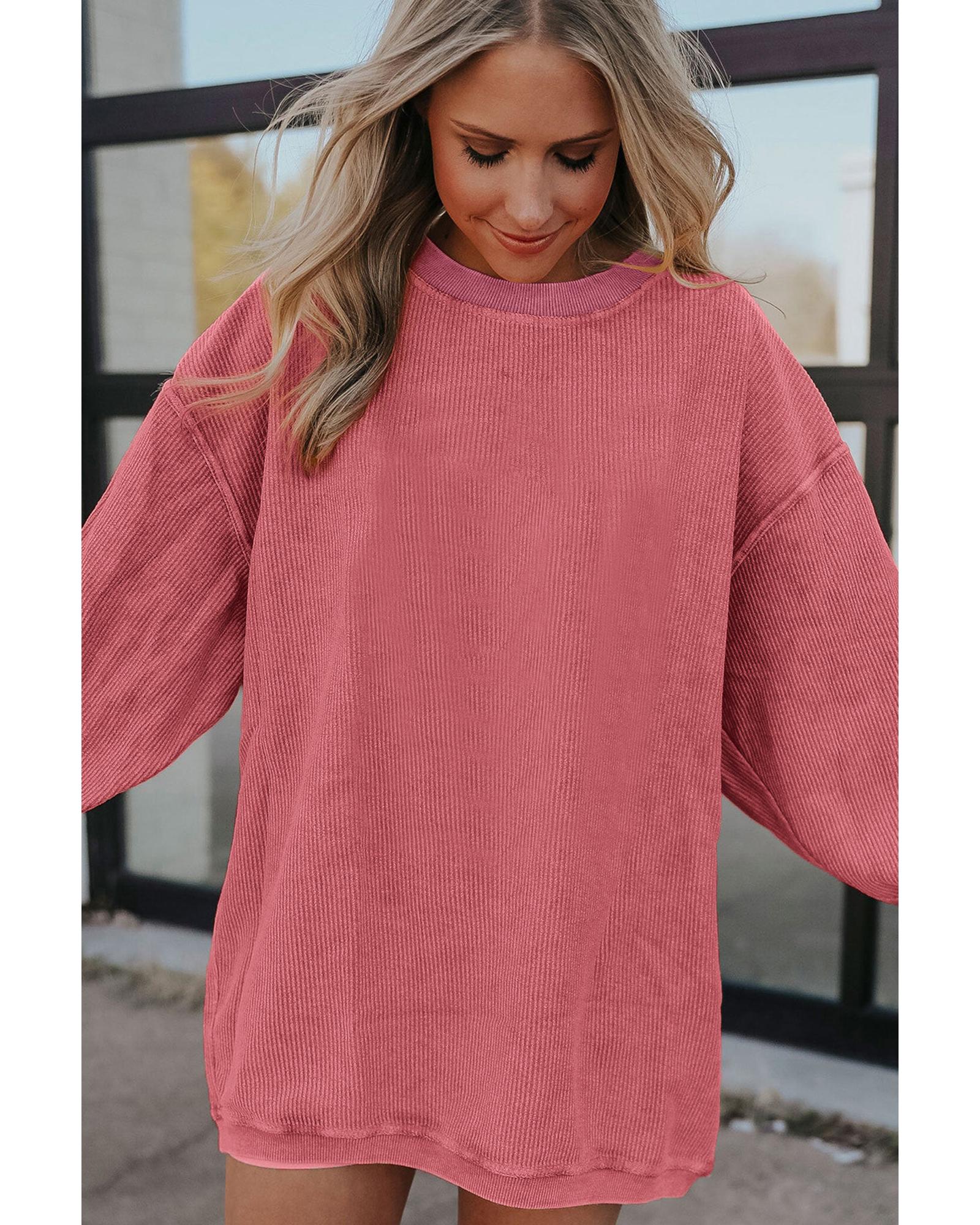 - Strawberry Pink Ribbed Corded Oversized Sweatshirt