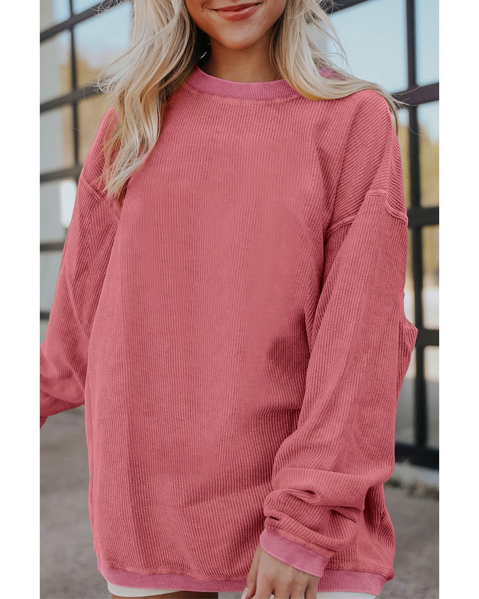 - Strawberry Pink Ribbed Corded Oversized Sweatshirt