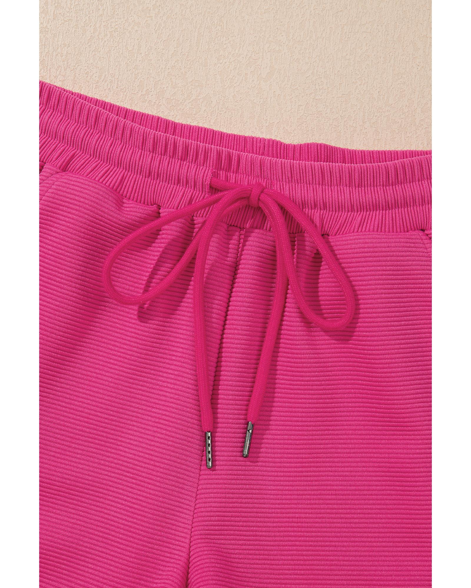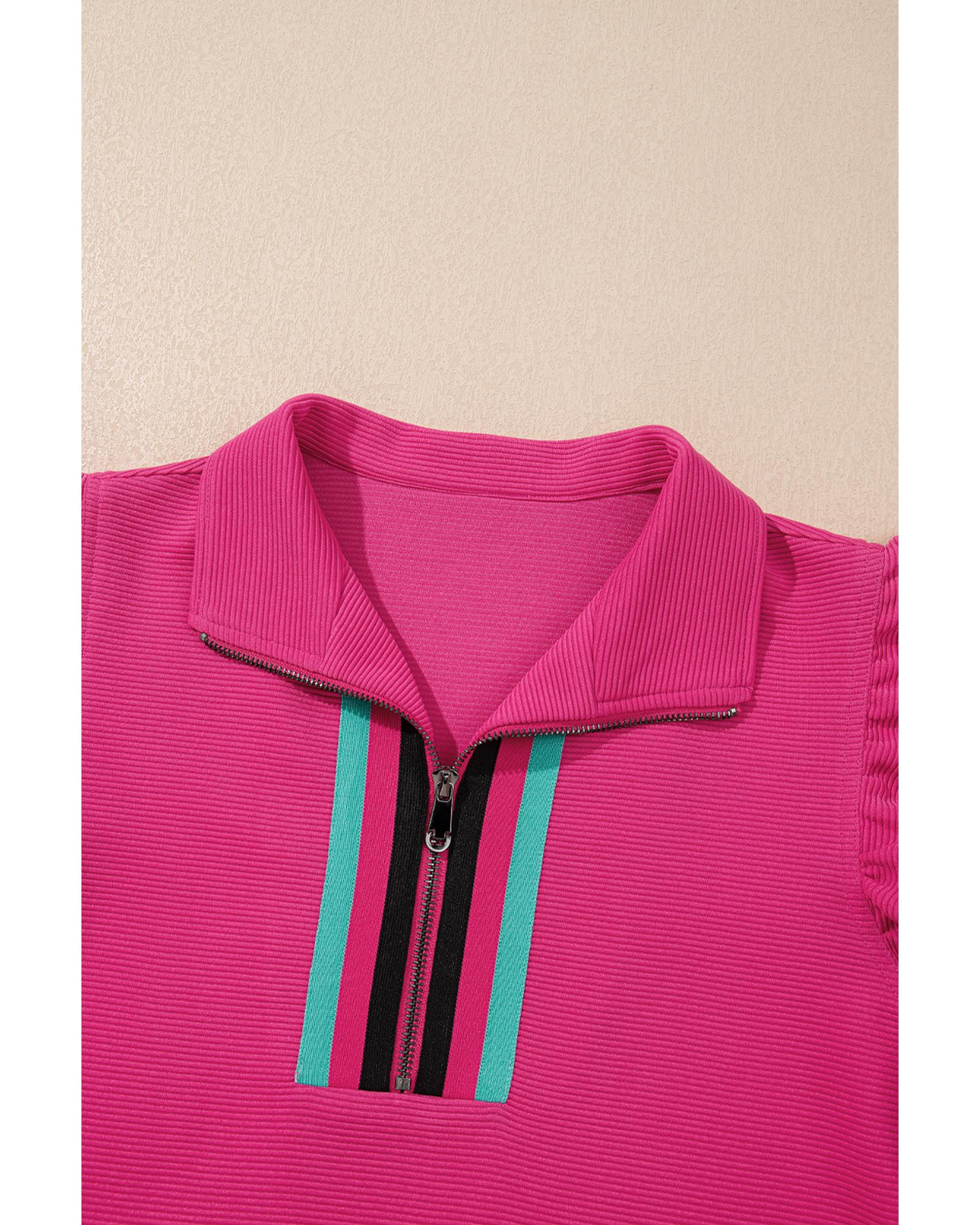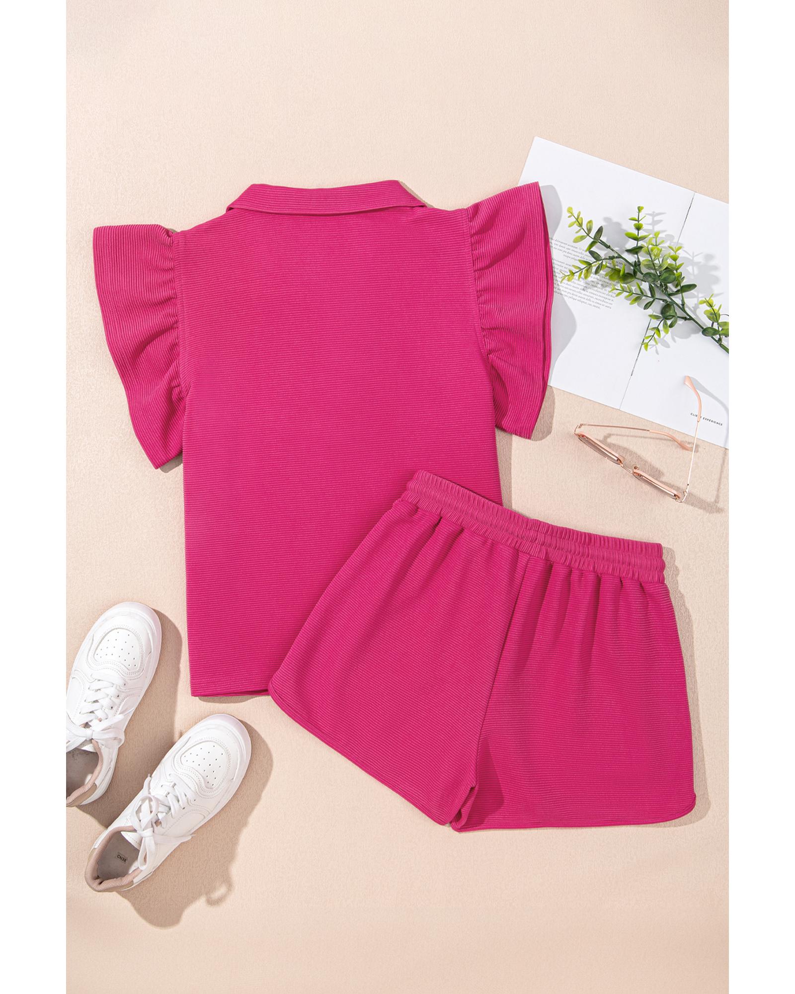 Strawberry Pink Striped Detail Flutter Sleeve Zipped Collar Short Set – XL