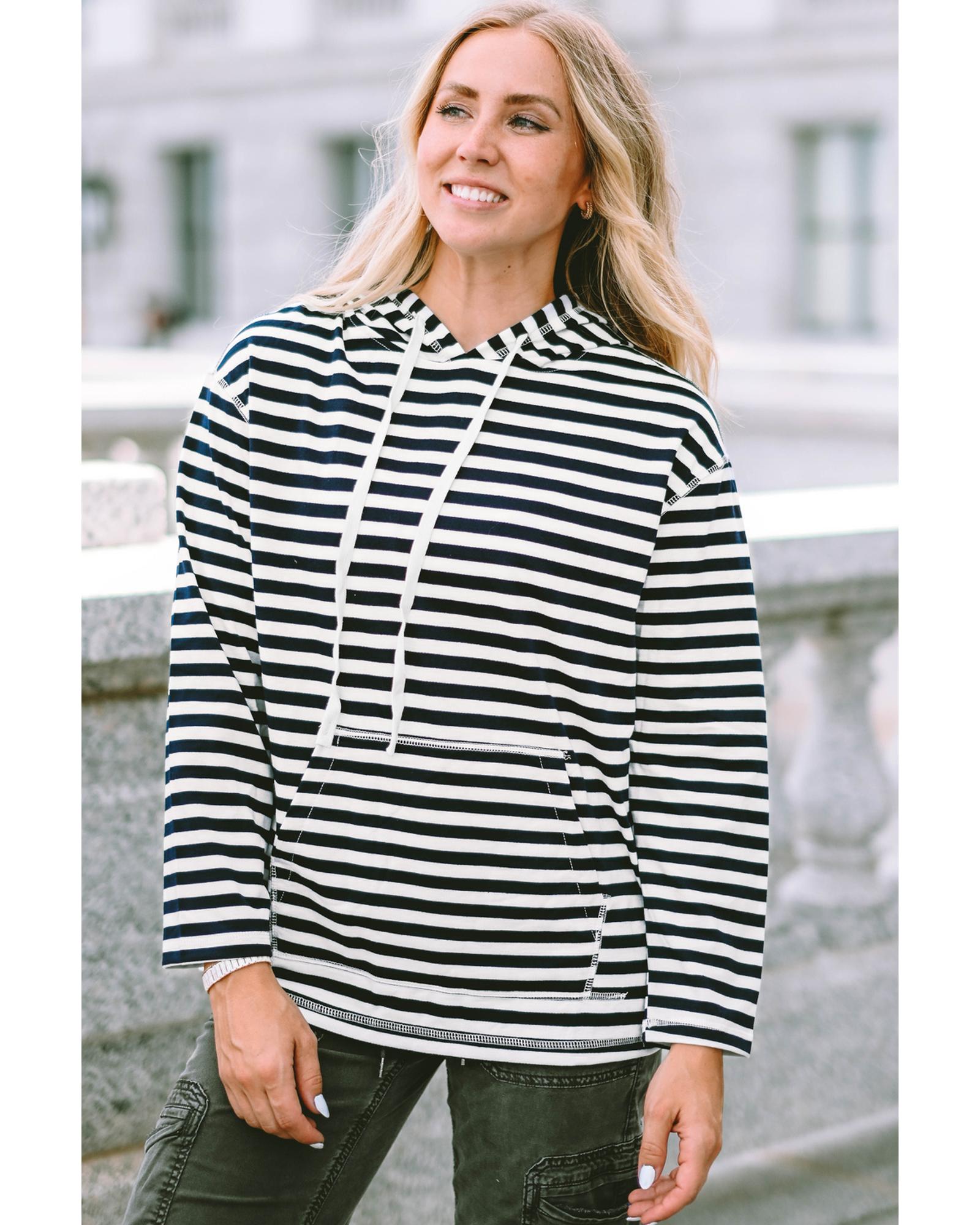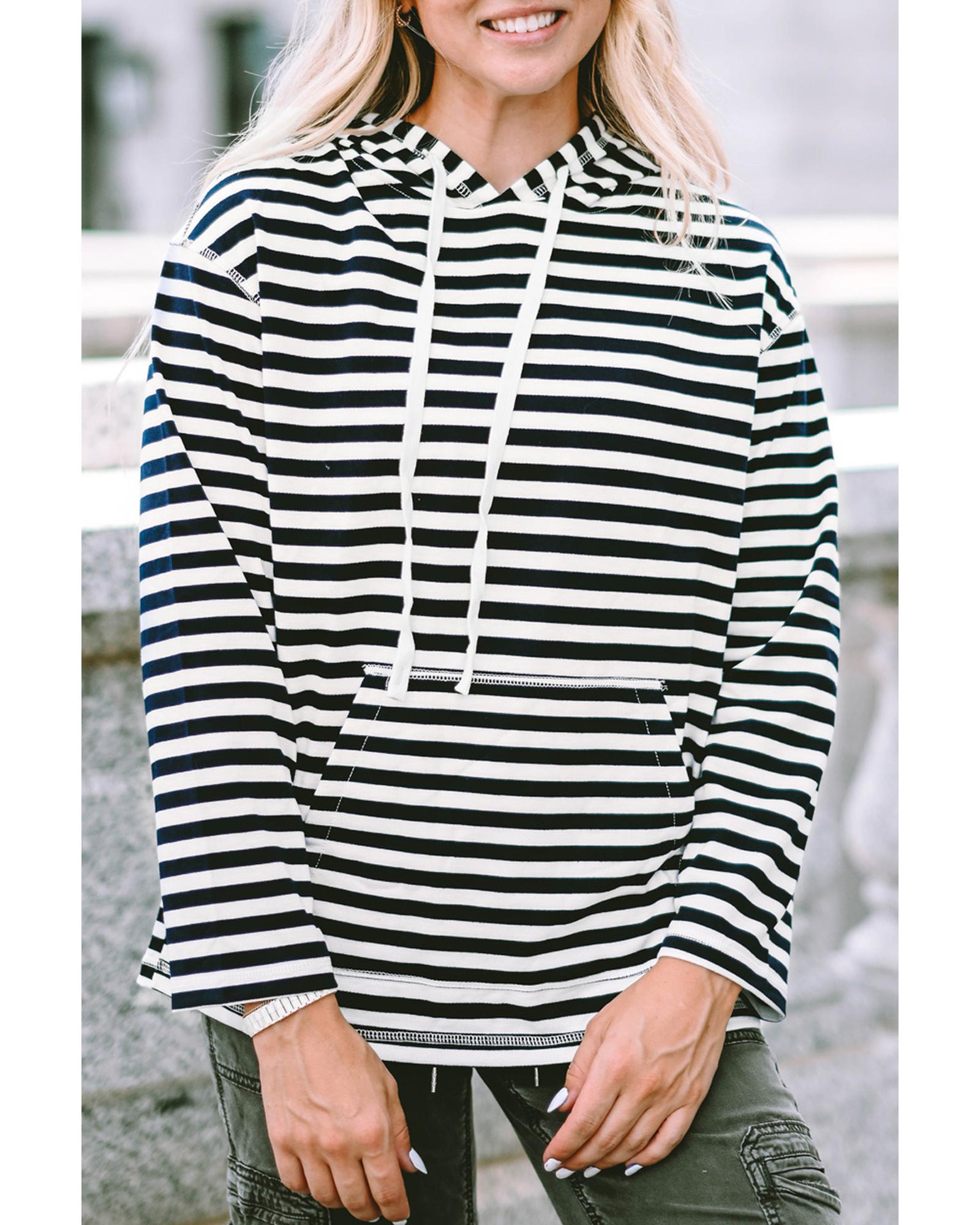 Stripe Kangaroo Pocket Drawstring Hoodie – S
