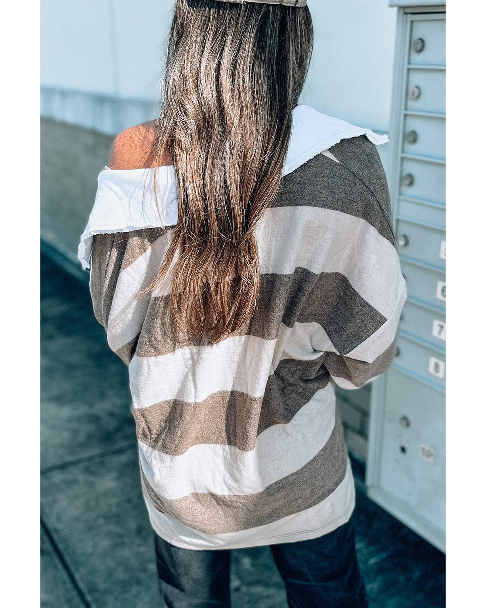 Stripe Oversized Collared Long Sleeve Top – L