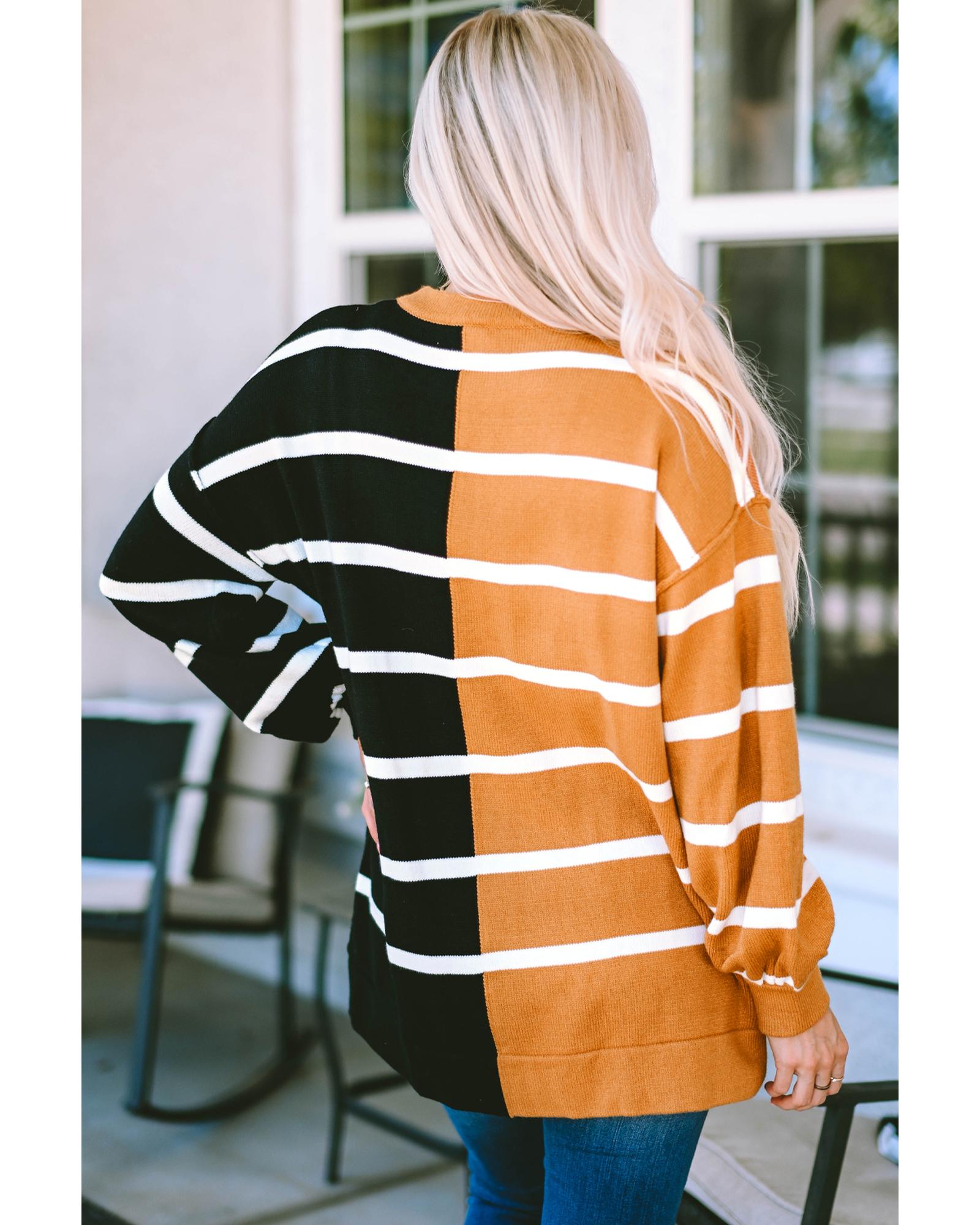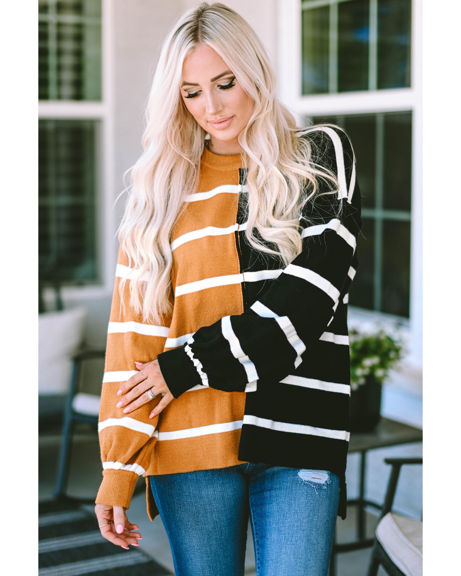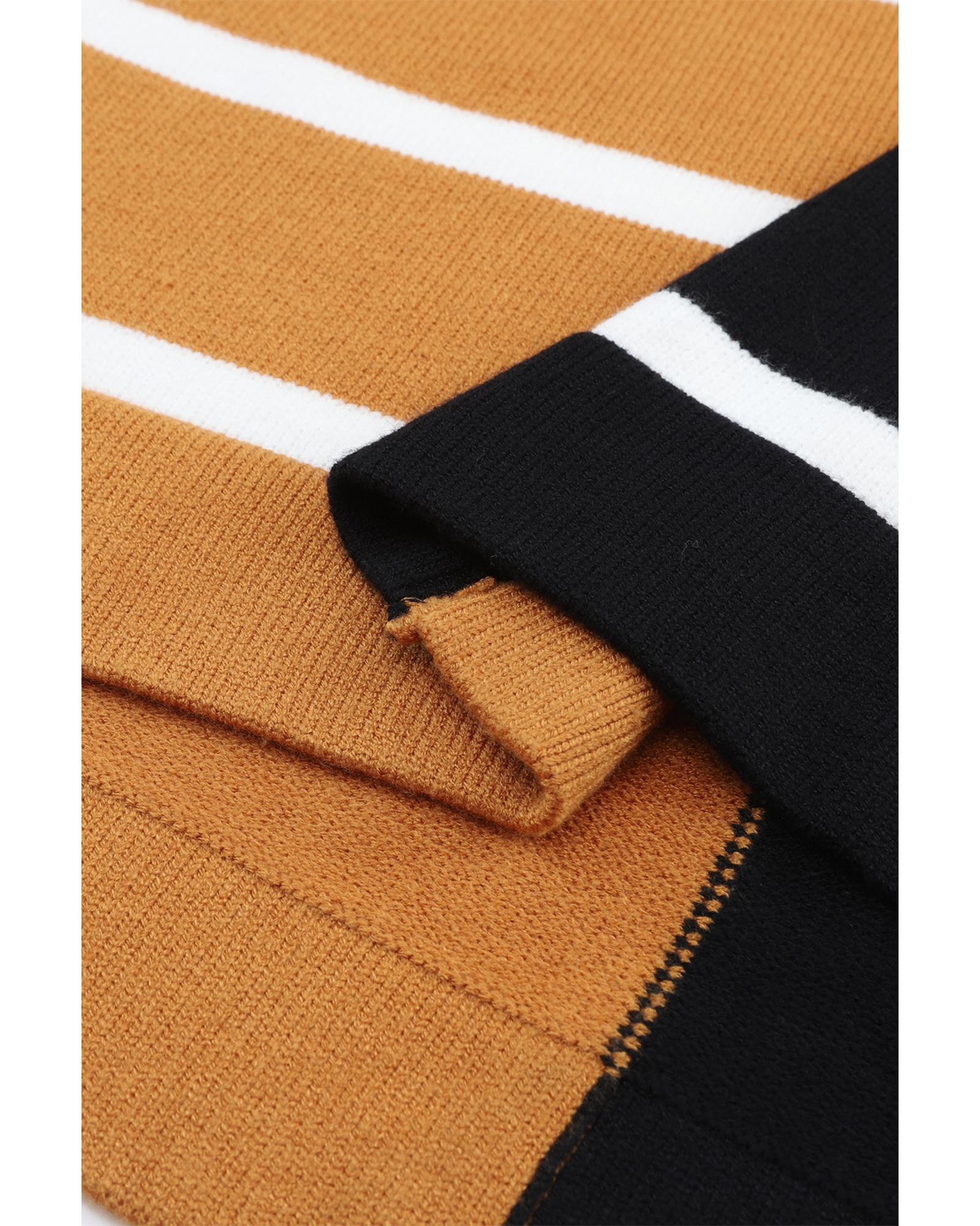 Classic crew neckline for a timeless look Dropped shoulder design for a relaxed silhouette Contrasting striped patchwork for a modern and eye - catching element Allows for easy movement and all