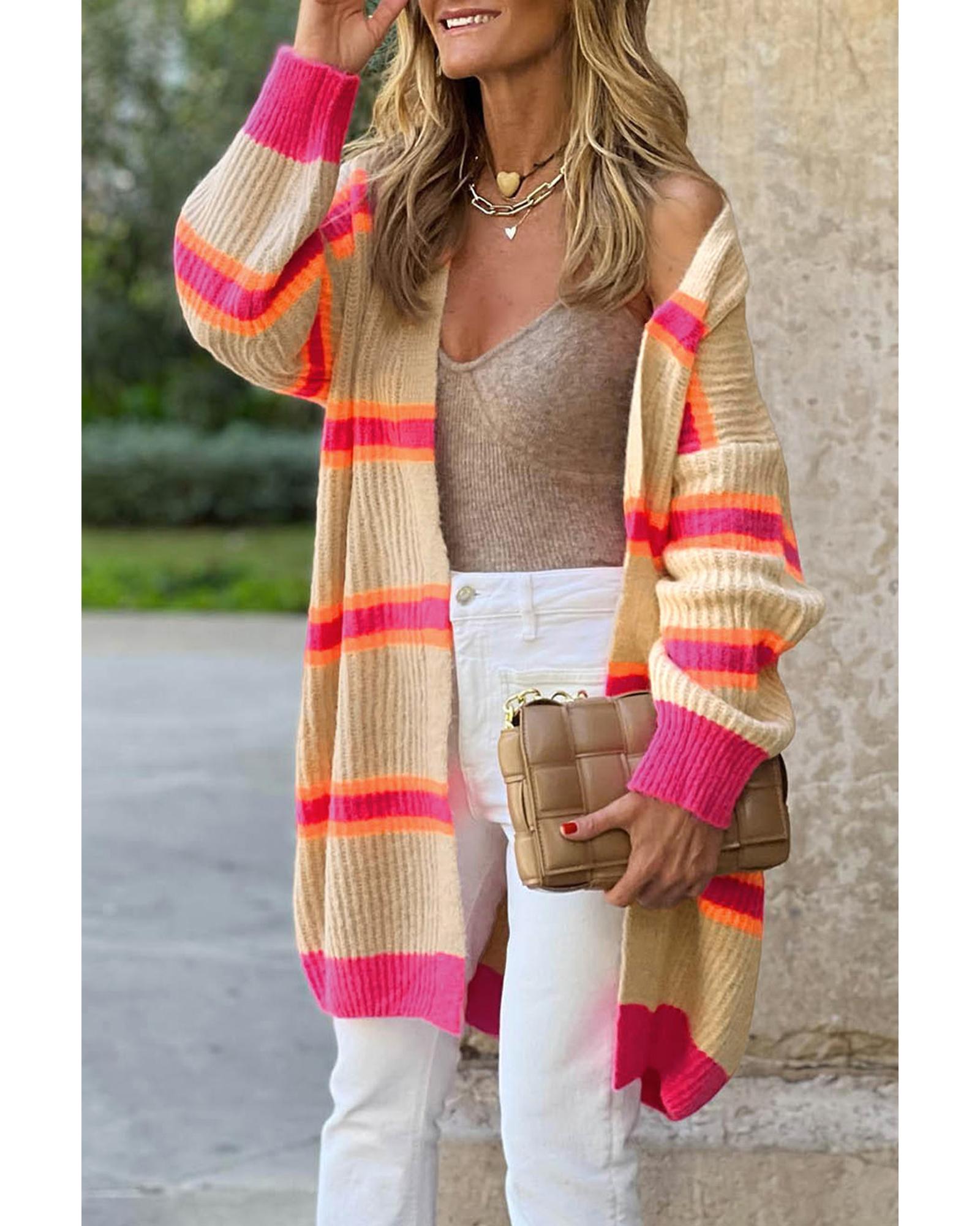 Stripe Printed Ribbed Long Knitted Cardigan – M