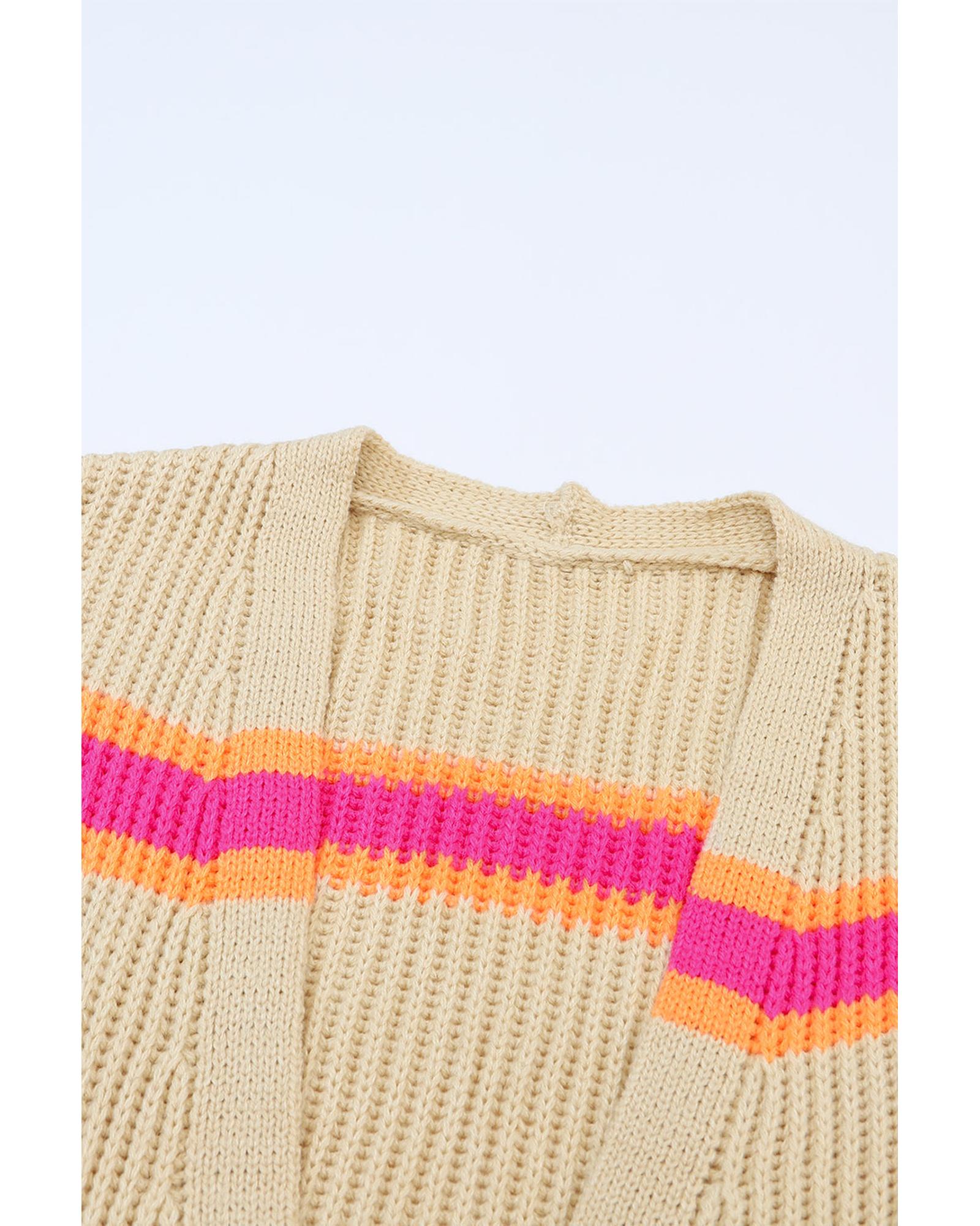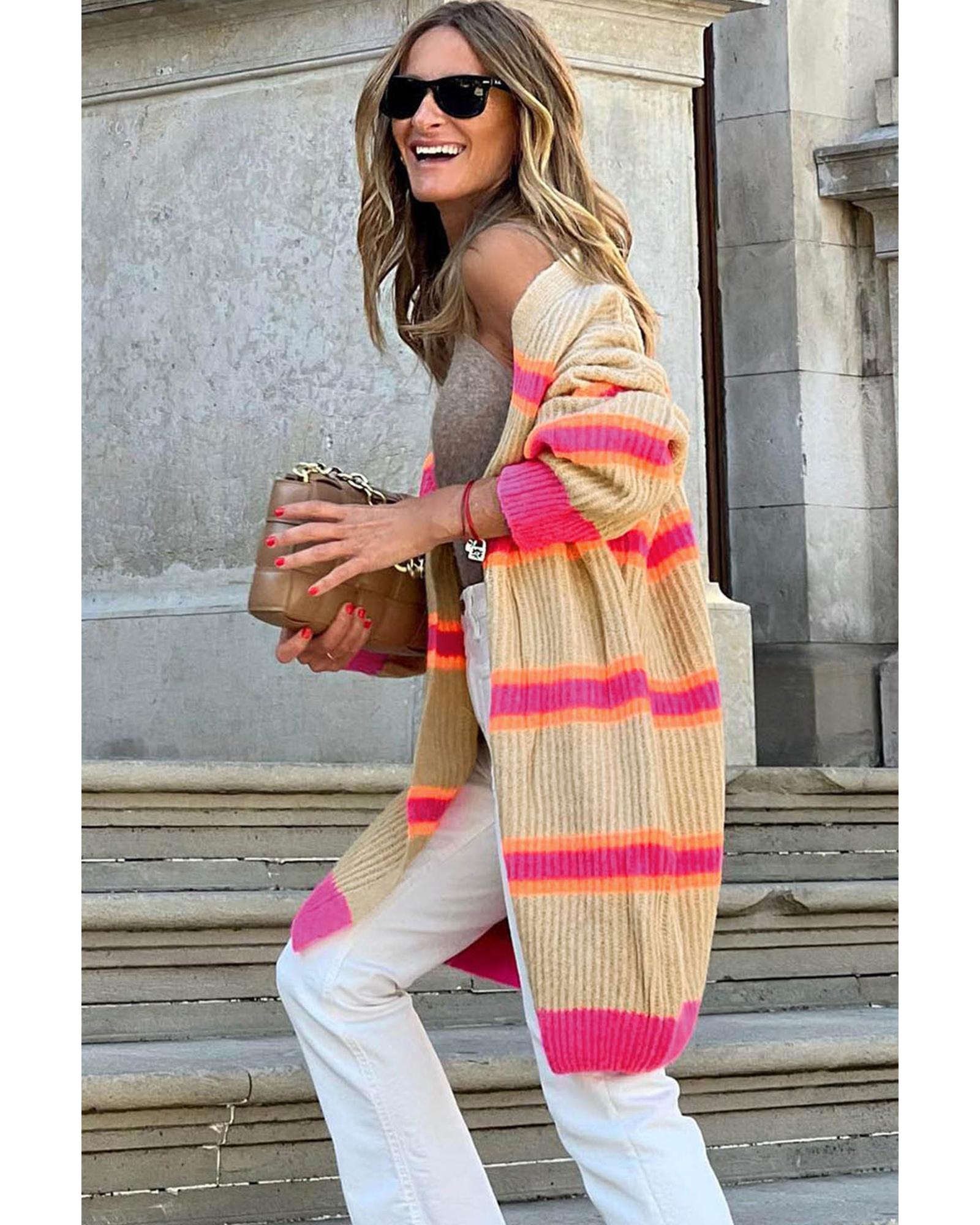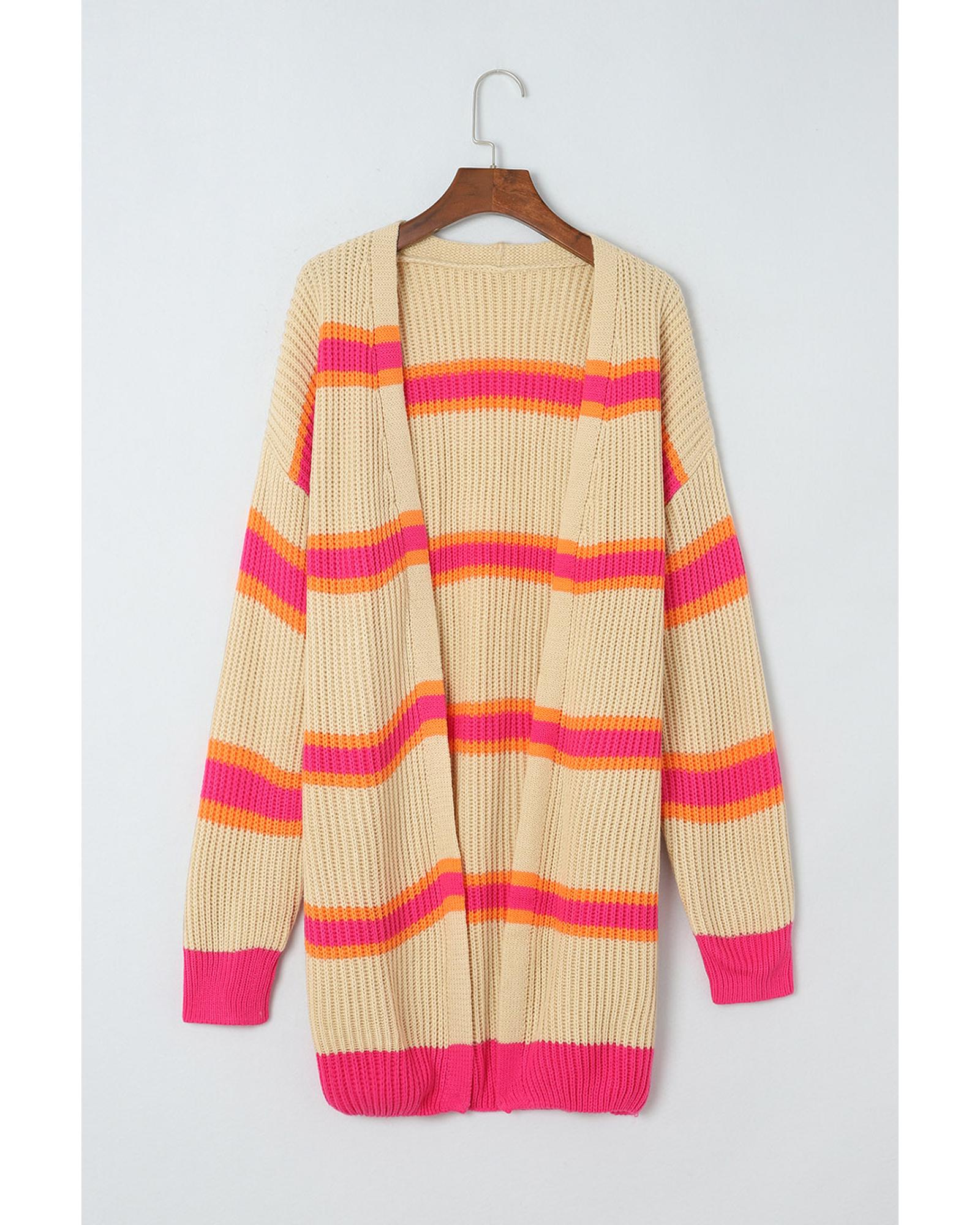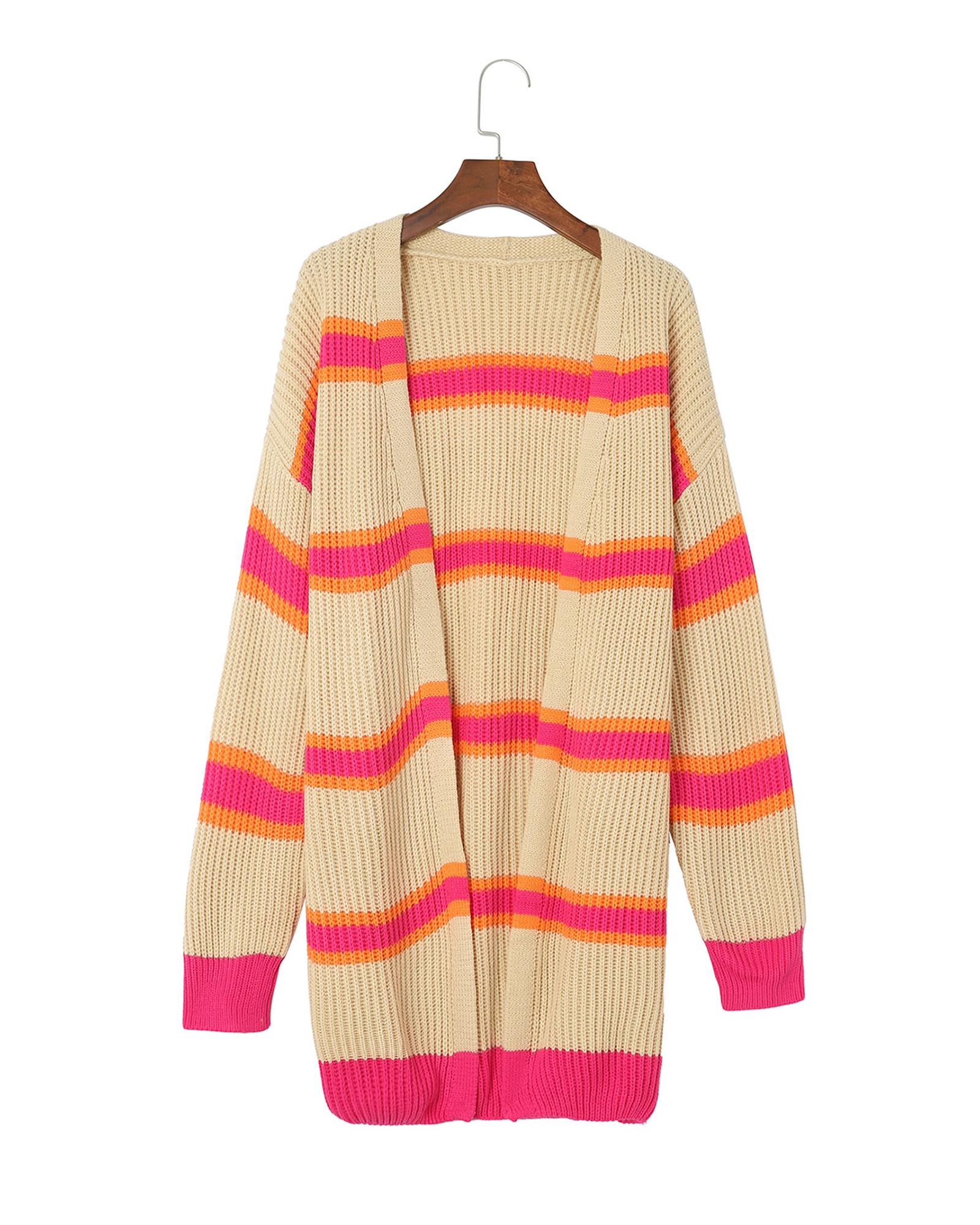 Stripe Printed Ribbed Long Knitted Cardigan – S
