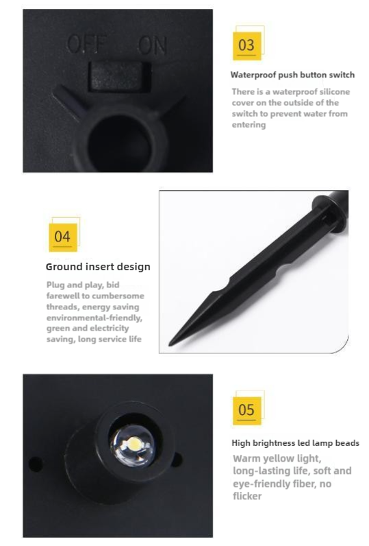 • Easy Installation: Includes a stake for easy insertion into the ground, no wiring required.