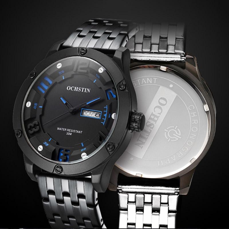Stylish Day-date Men Quartz Watch with Steel Strap – Black Beige
