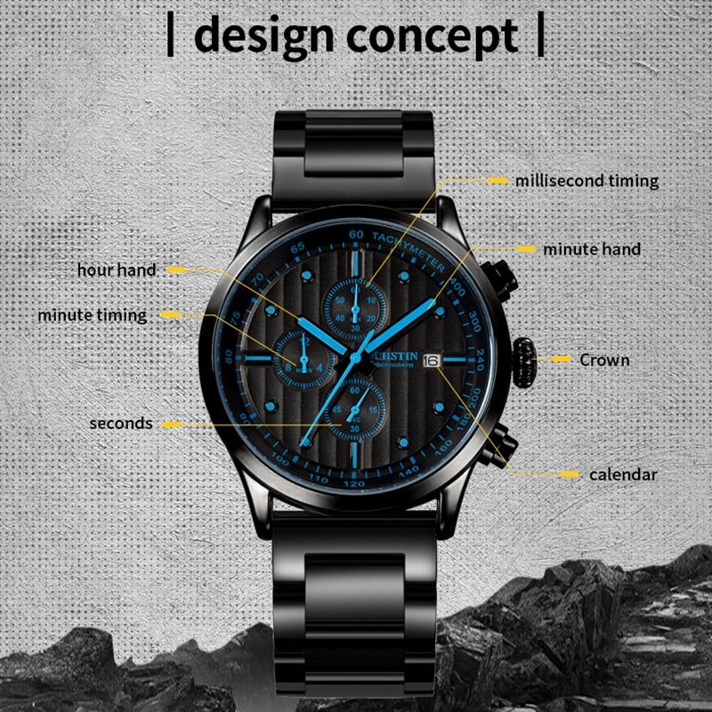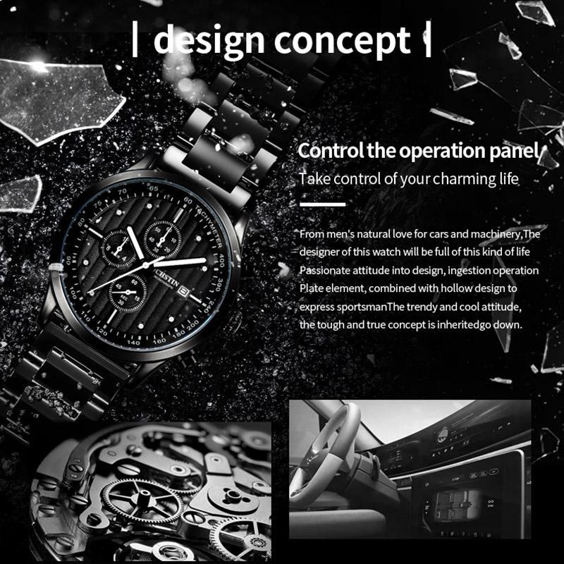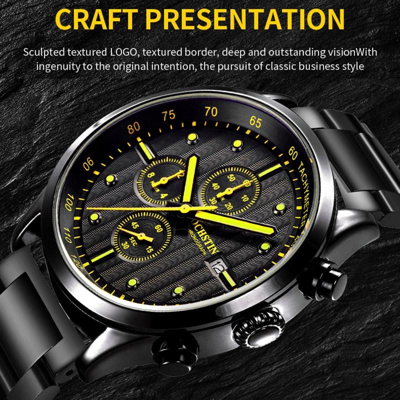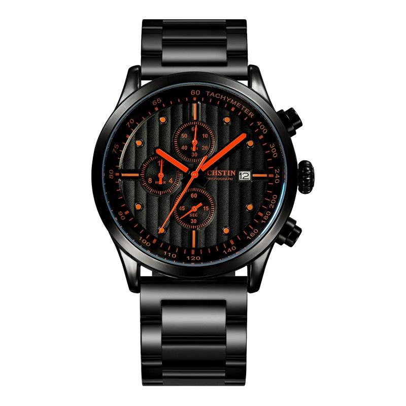Stylish Multifunctional Men Quartz Watch with Steel Strap – Black Orange