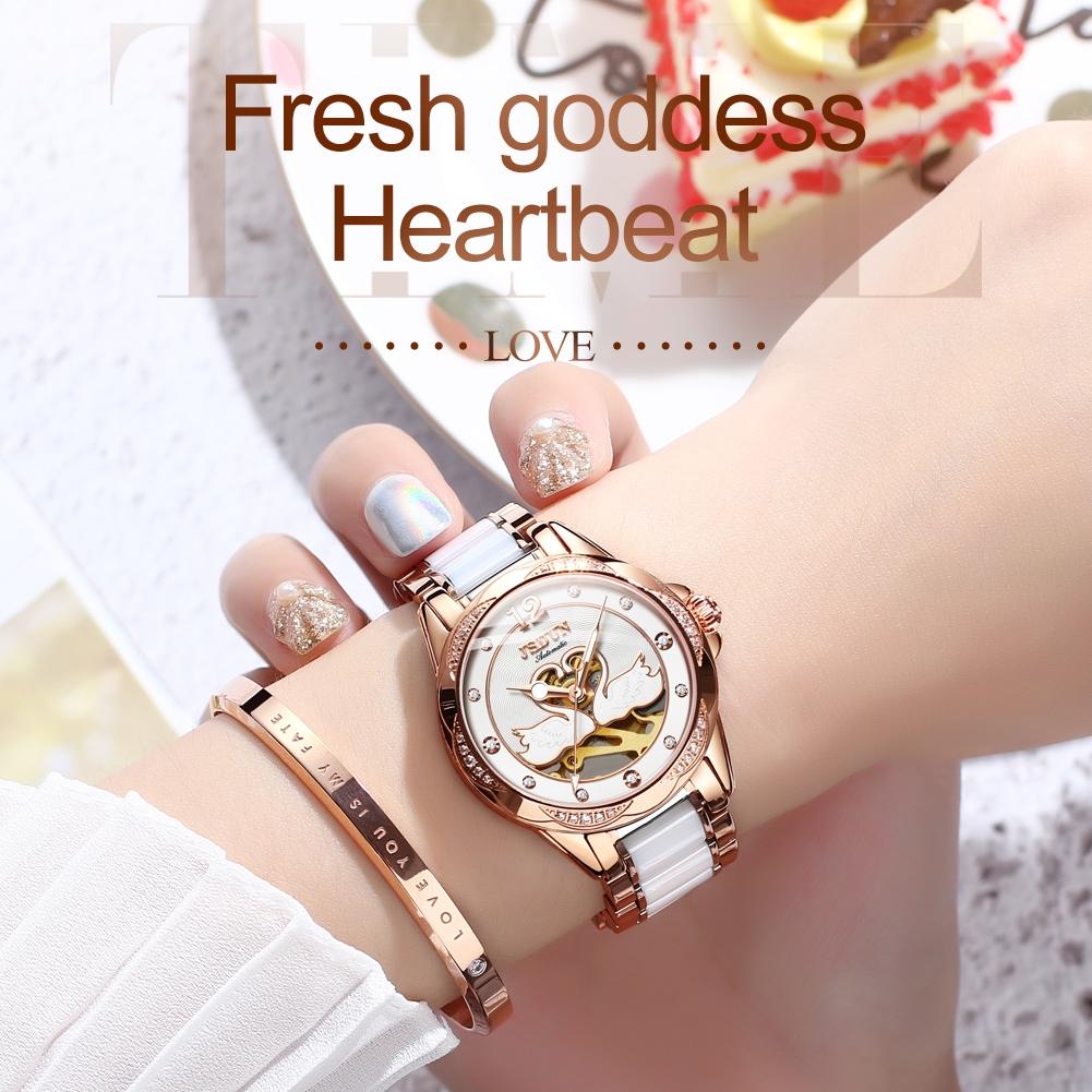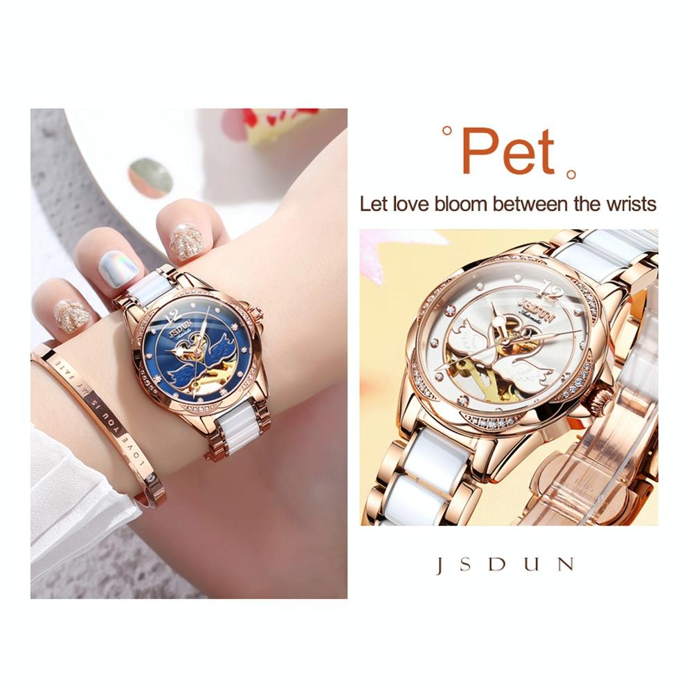 Stylish Waterproof Ceramic Mechanical Watch for Women with Diamond Accents – Blue