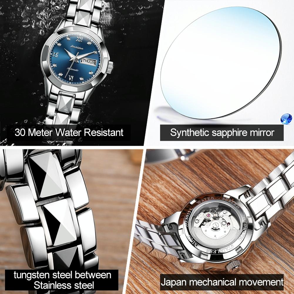 • 1 x 8813 Fashion Waterproof Luminous Automatic Mechanical Watch Women
