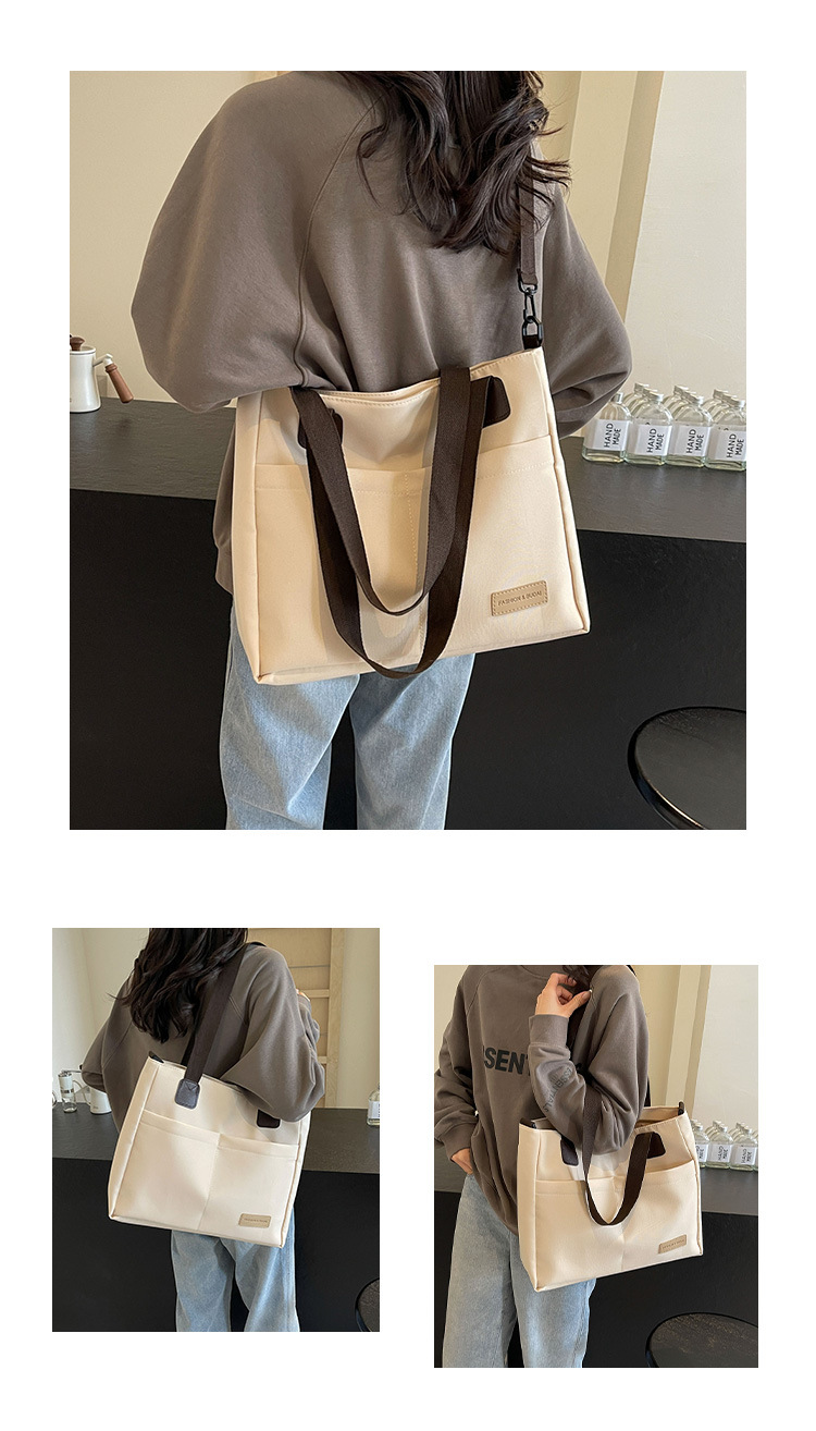 Stylish Beige Canvas Tote Bag with Detachable Shoulder Strap