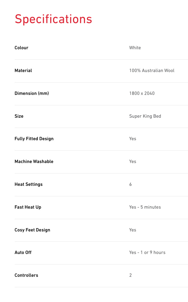 This 100% Australian wool fully fitted blanket comes with two detachable controllers just unplug and pop your blanket in the washing machine for easy laundering.