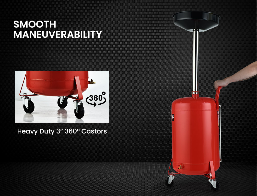 Time for a better way of working? The heavy-duty rugged construction of the T-REX TRD-6ST Mobile Waste Drainer with its large 60L powder-coated holding tank make it ideal for quickly and efficiently draining, storing and transferring of motor engine oil, transmission fluid, coolant, differential and other fluids from motor vehicles.