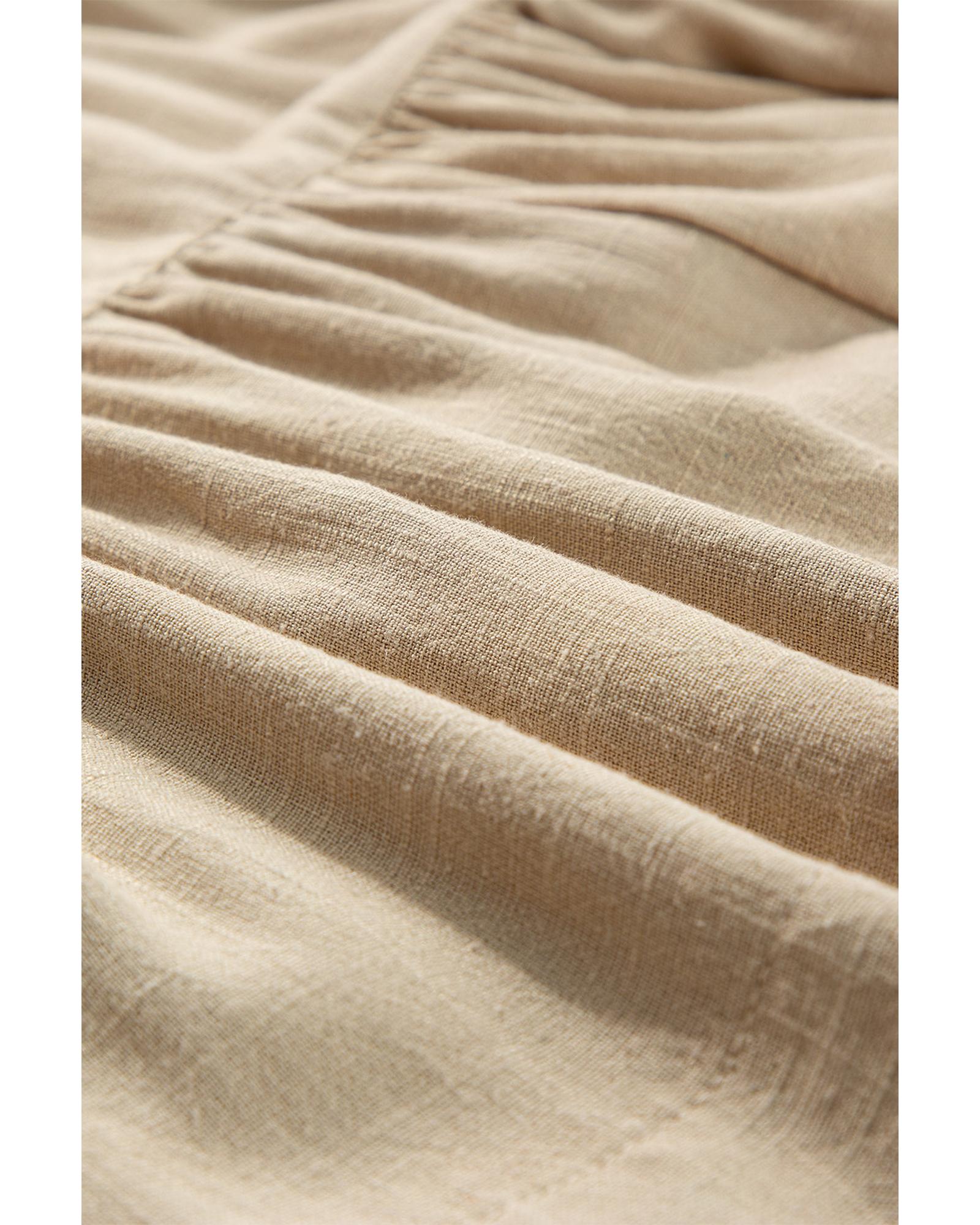 Tan Puff Sleeve Buttoned Tiered Pleated Shirt Mini Dress – S