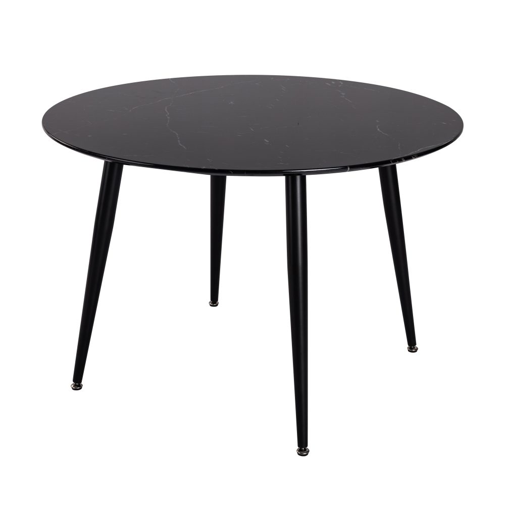 Our dining table is designed according to the style of medieval furniture. It is made of solid MDF wood and powder coated steel. It is sturdy and durable, with charming circular contour, smooth edges and charming marble effect surface. It is simple and advanced, and can easily integrate into the dining environment. The bottom of the table also has a skid resistant design, which is to protect the floor under the table from scratches and increase stability. Moreover, the desktop is very easy to clean, and oil stains and dirt can be refreshed just by gently wiping.