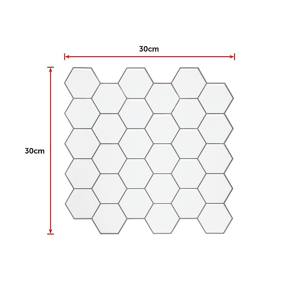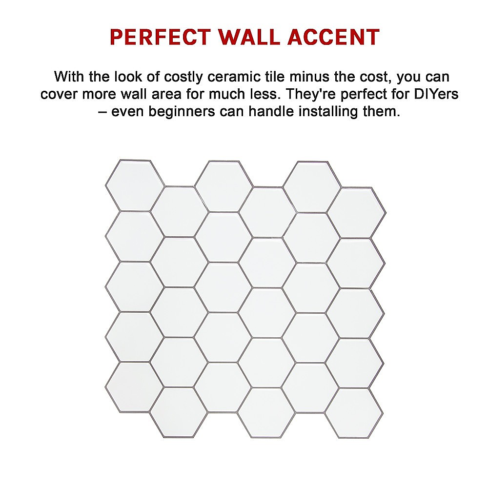 Tiles 3D Peel and Stick Wall Tile Hexagon White (30cm x 30cm x 10 sheets)
