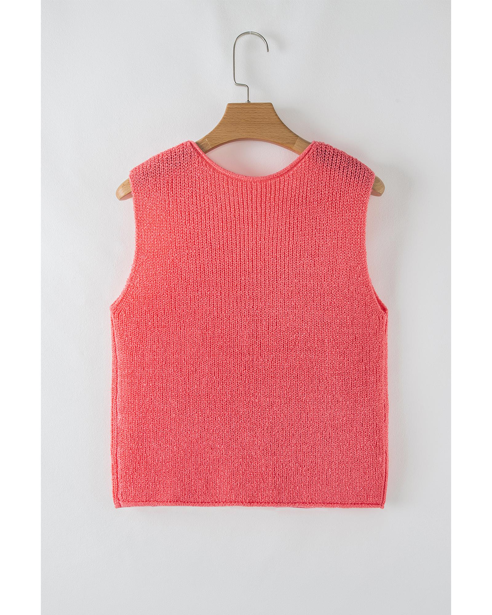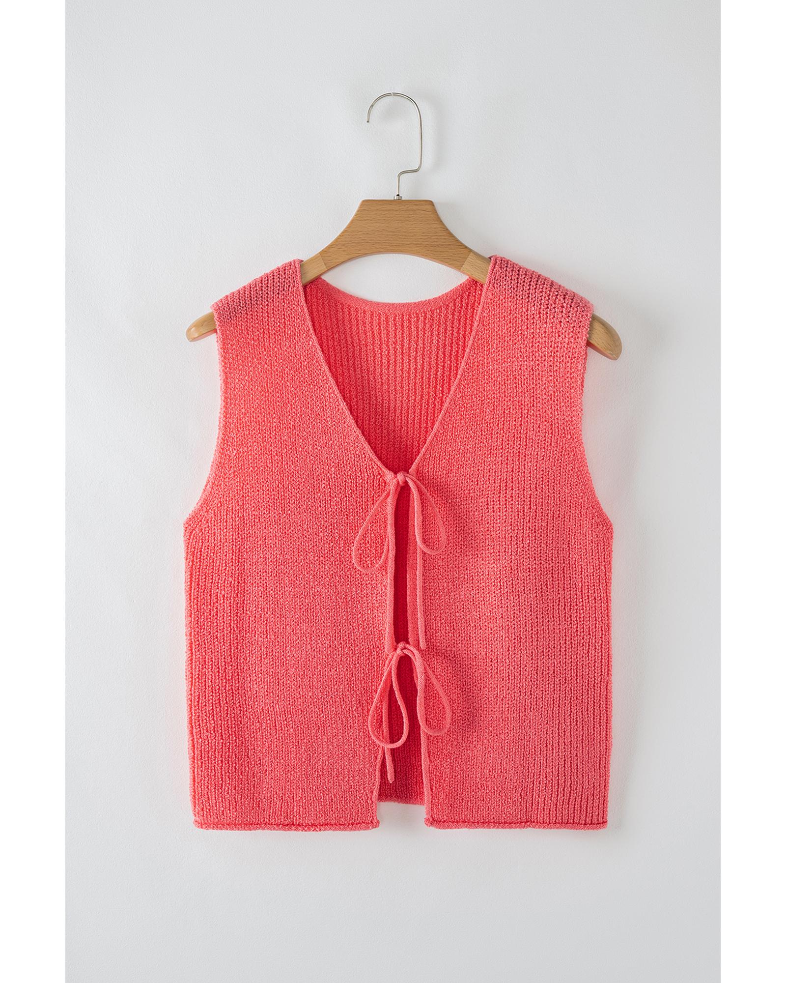 Tomato Red Lace-up Front V Neck Sweater Vest – S