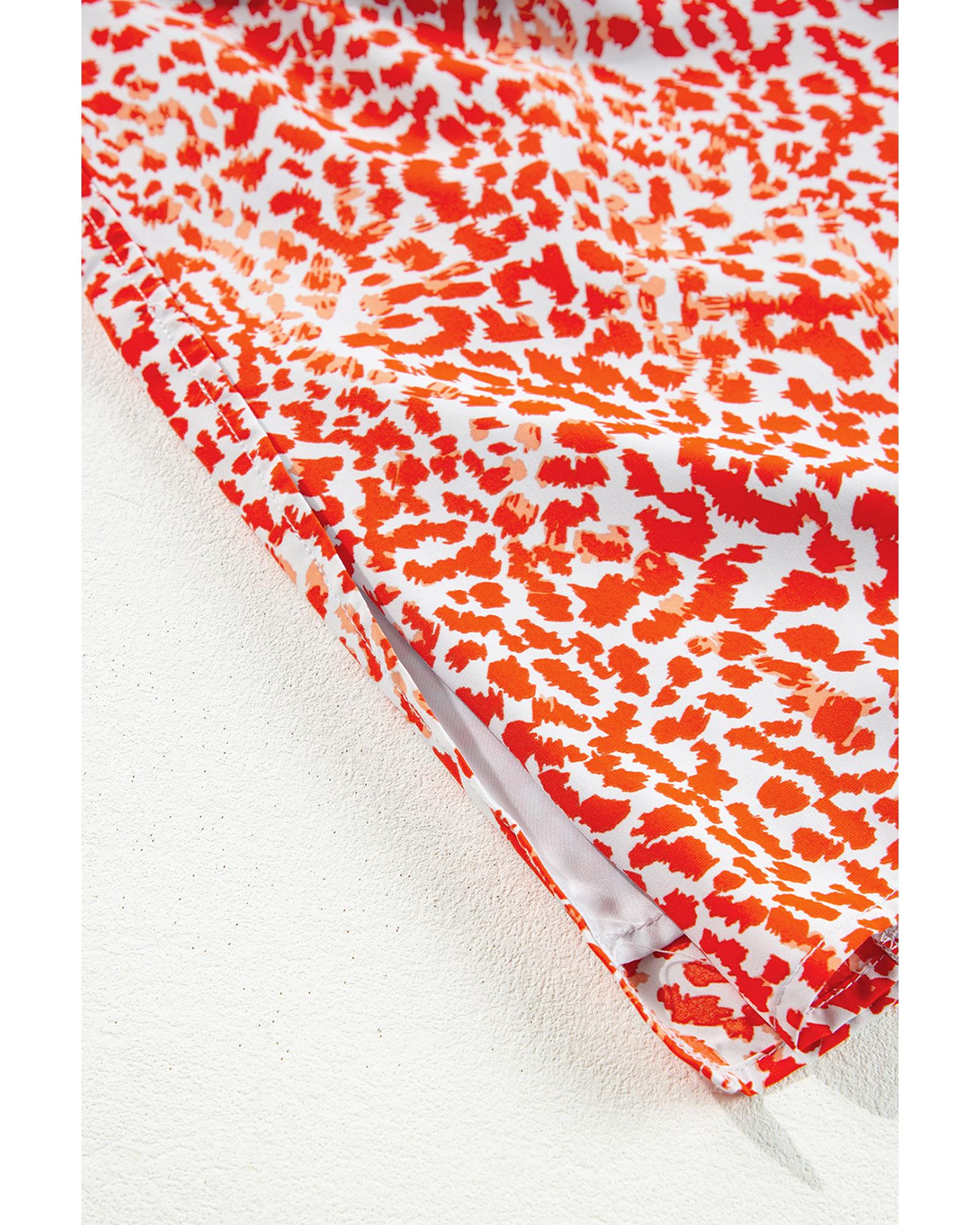 Tomato Red Leopard Print Long Sleeve Hollowed Back Split Mini Dress – S