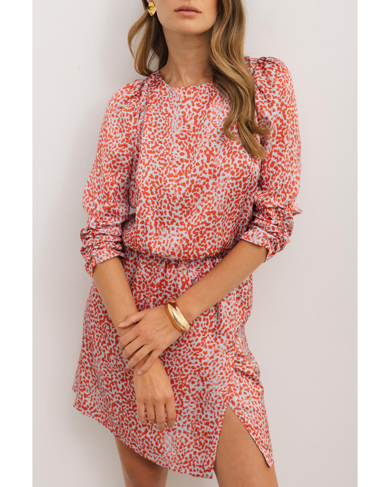 Tomato Red Leopard Print Long Sleeve Hollowed Back Split Mini Dress – XL