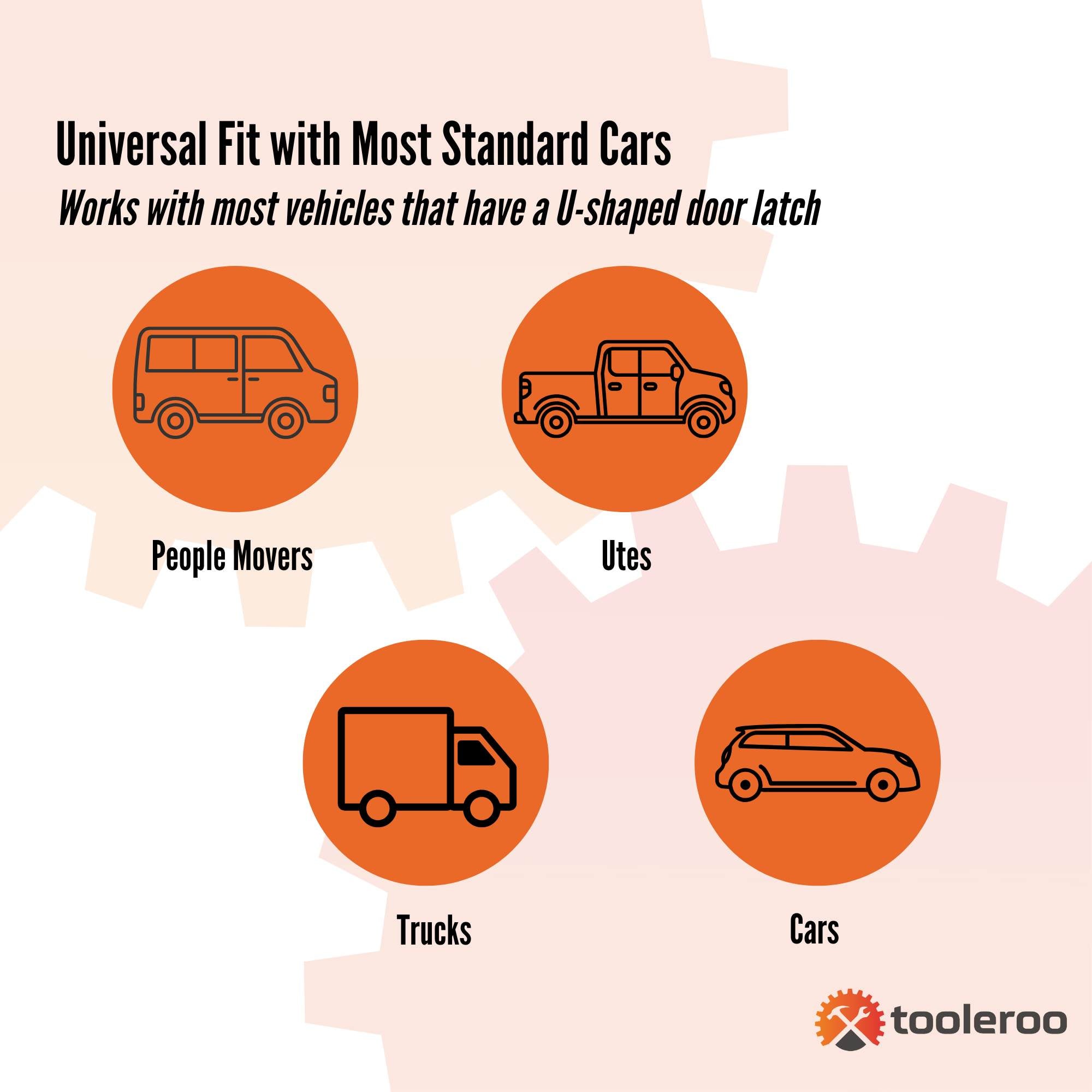 • Universal Fit: Works with most vehicles that have a U-shaped door latch (standard in most cars).