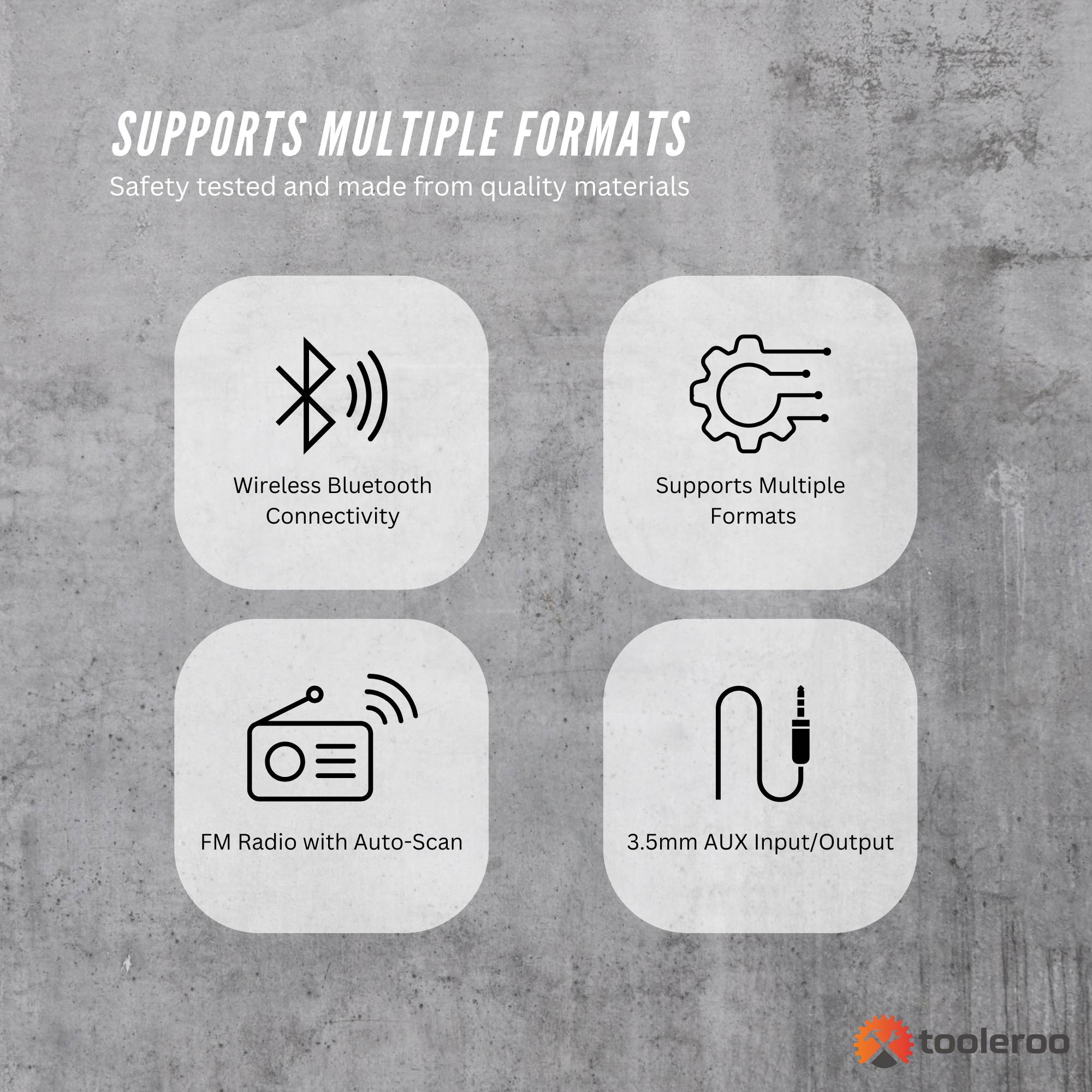 - FM Radio with Auto-Scan – Quickly tune in to your favourite stations.