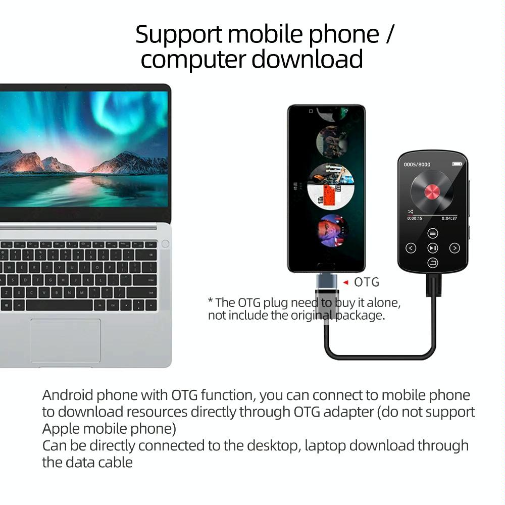 Touch Screen Mp3 Bluetooth Music Player 128Gb Memory Hifi Sports Clip – No Tf Card