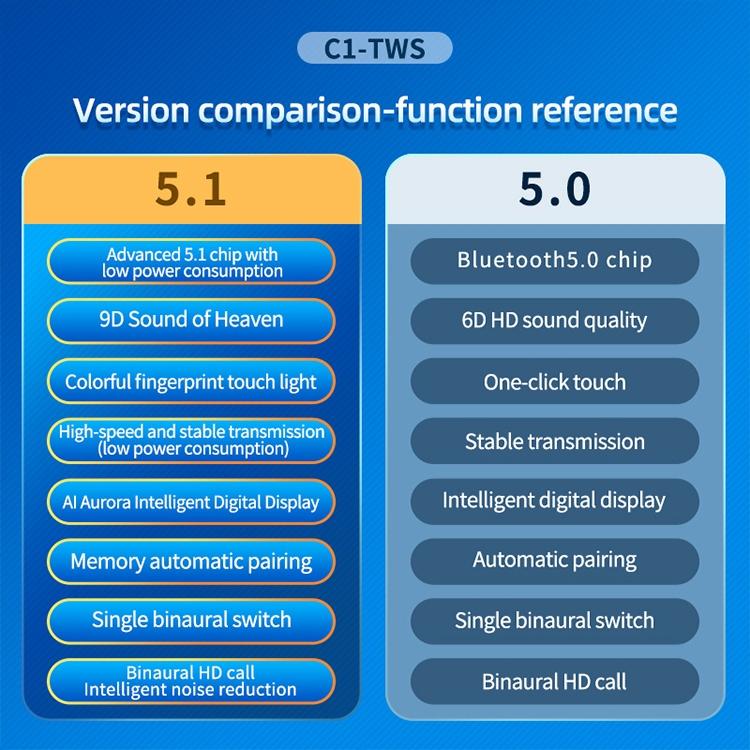 • 1 x C1 Tws Touch Digital Display True Wireless Bluetooth 5.0 Earphone With Charging Box