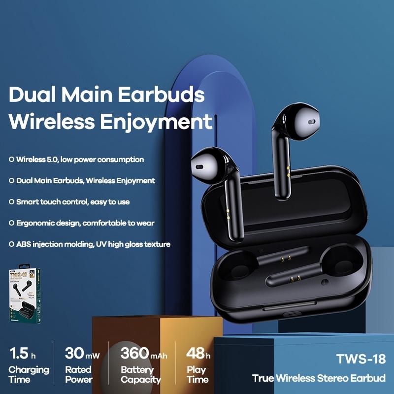 True Wireless Stereo Bluetooth 5.0 Earphones – Tws-18 – Black