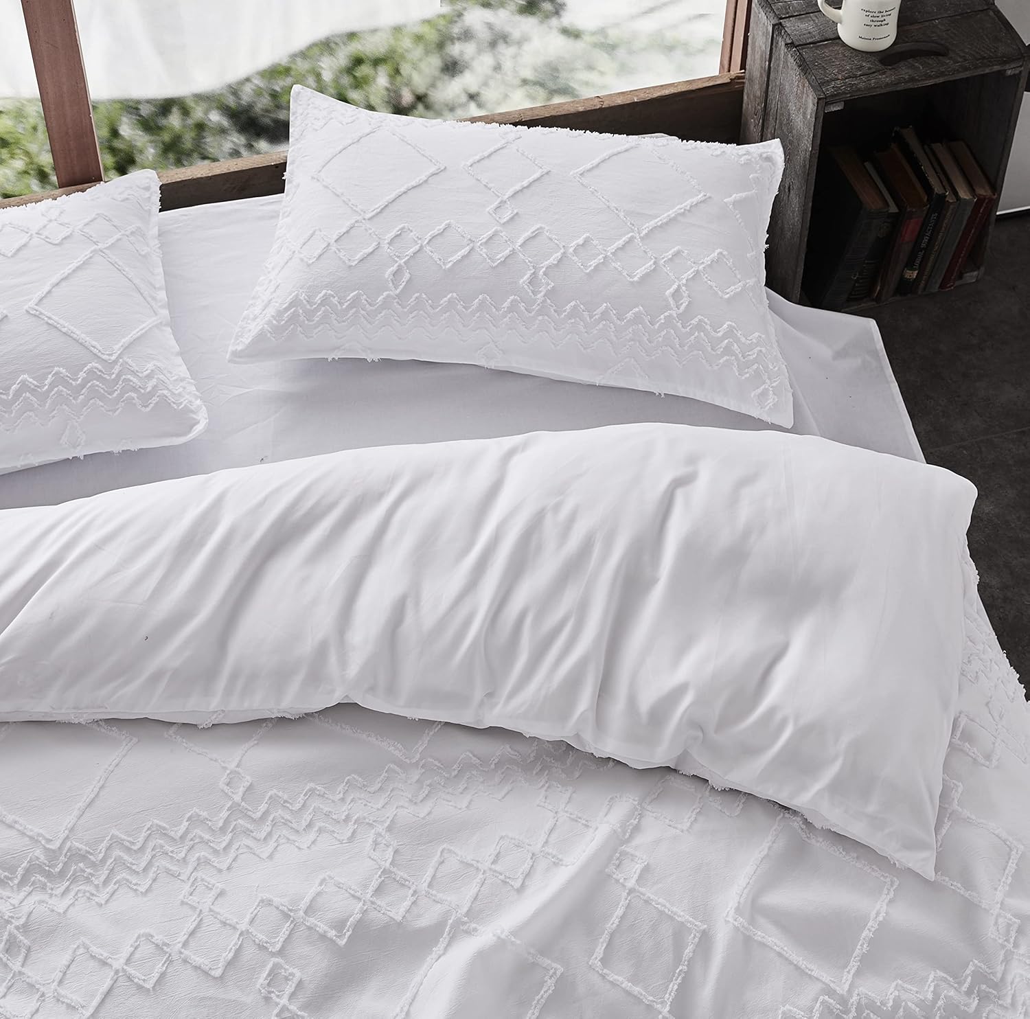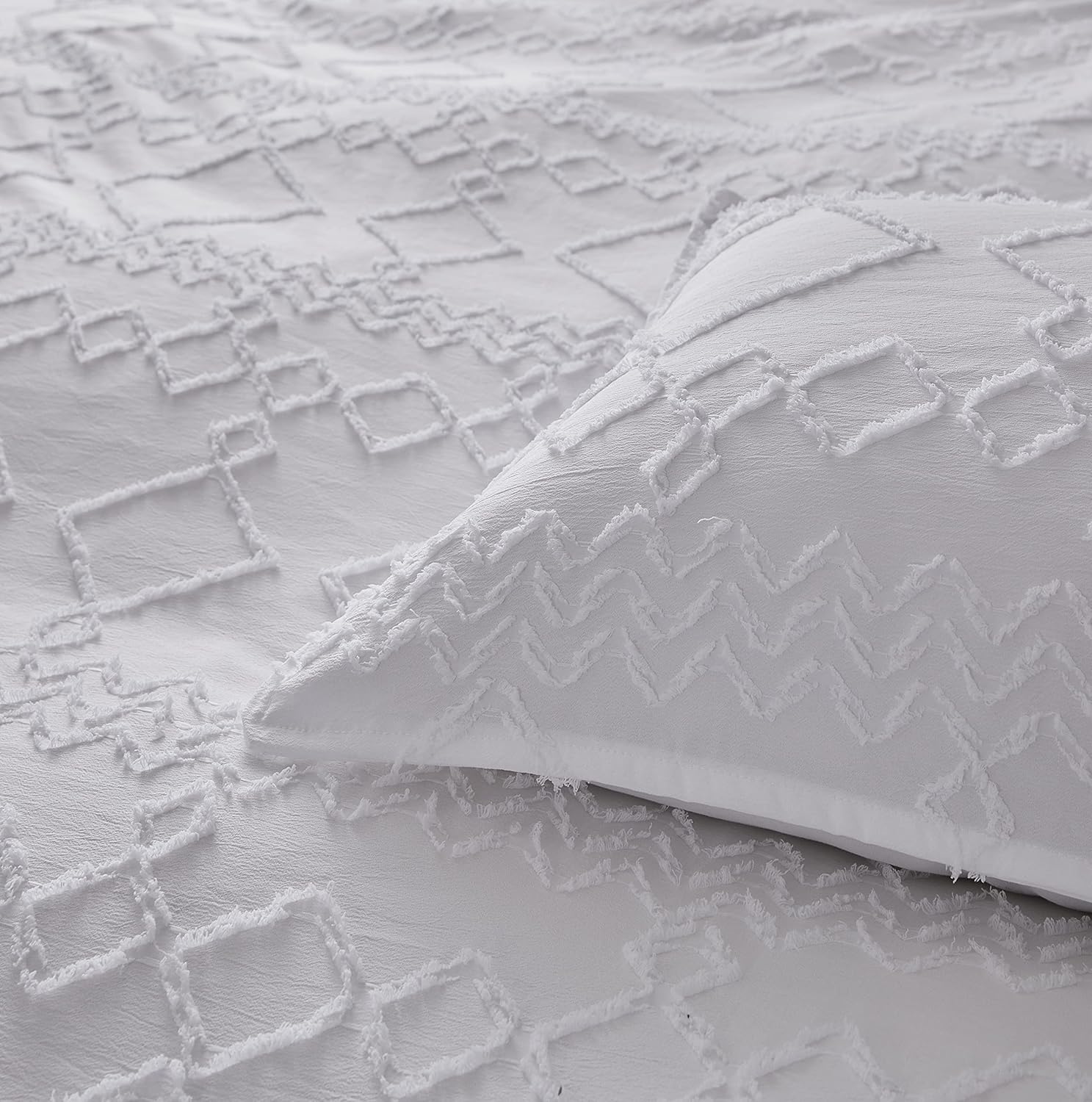 Front is tufted microfiber, reverse is brushed microfiber,Includes: 2 x standard pillowcases 48x73cm,machine washable, zipper closure,