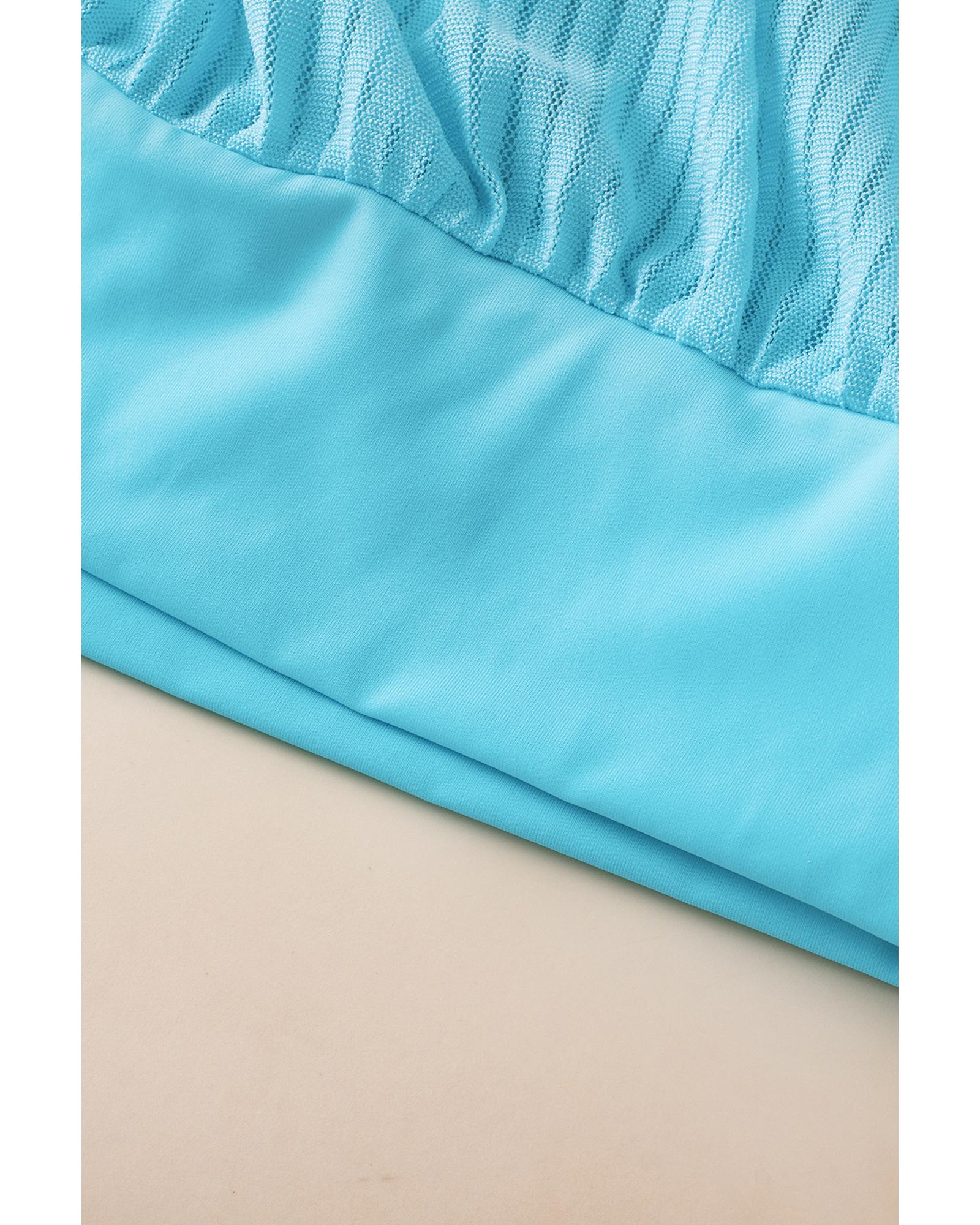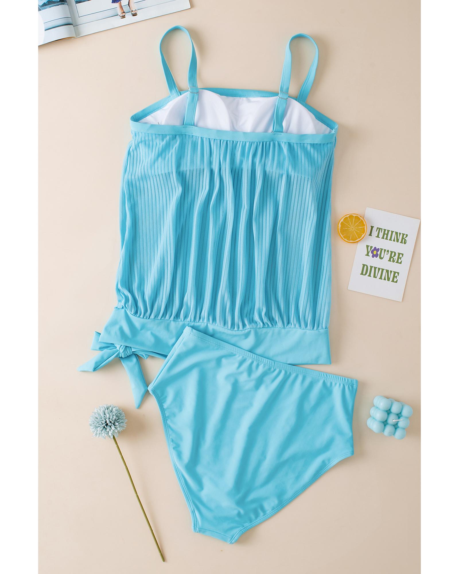 Turquoise Striped Mesh Knotted Hem Tankini Swimsuit – XL