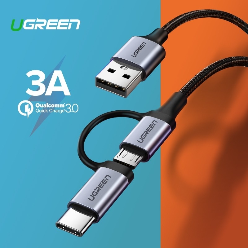 UGREEN 30875 2-in-1 USB-A to Micro USB / USB-C Cable 1m