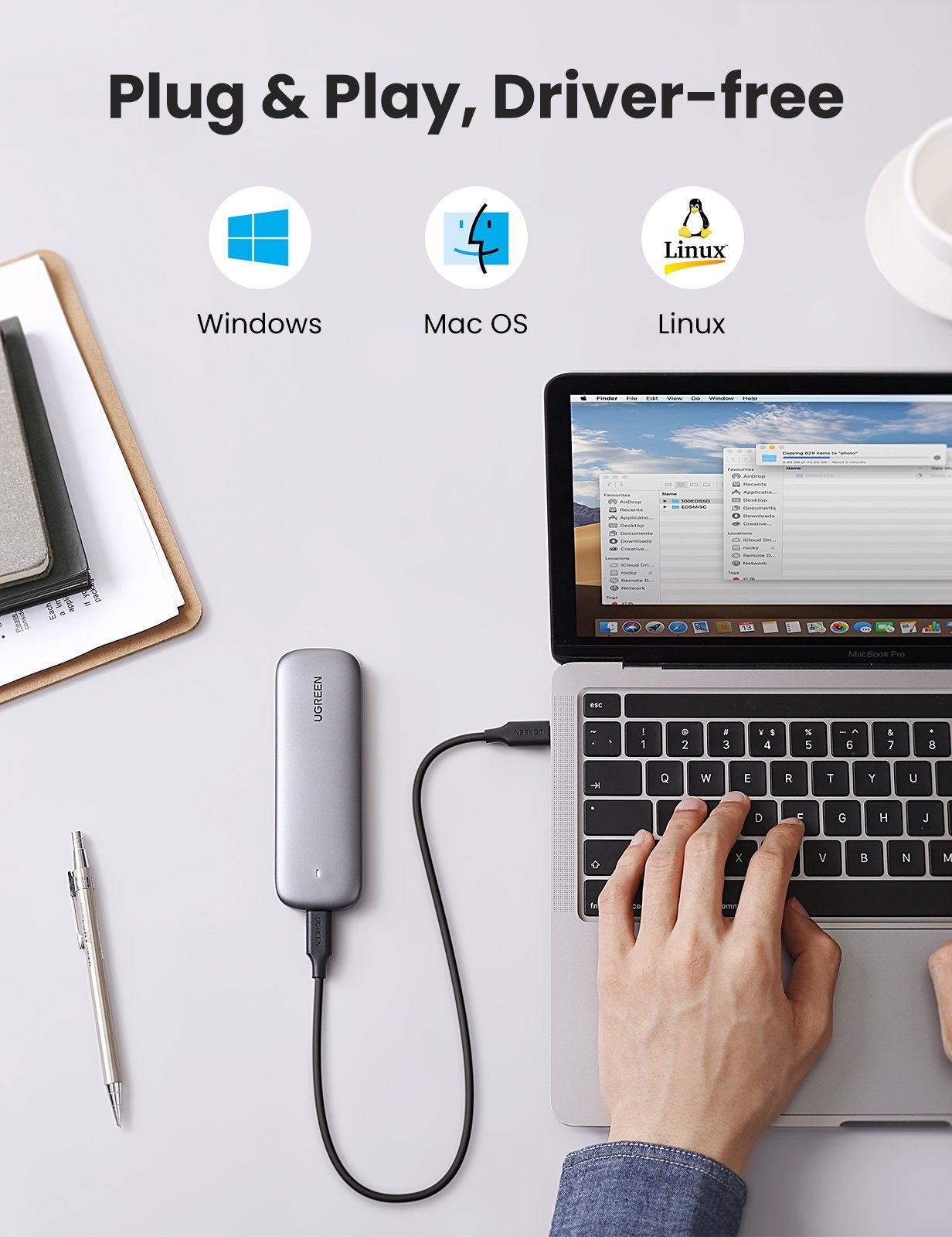 This M.2 SSD enclosure features latest USB 3.1 Gen 2 and PCIe GEN 3, which supports amazing data transmission rate up to 10Gbp. It is faster enough to transfer 1GB files in 1 second.