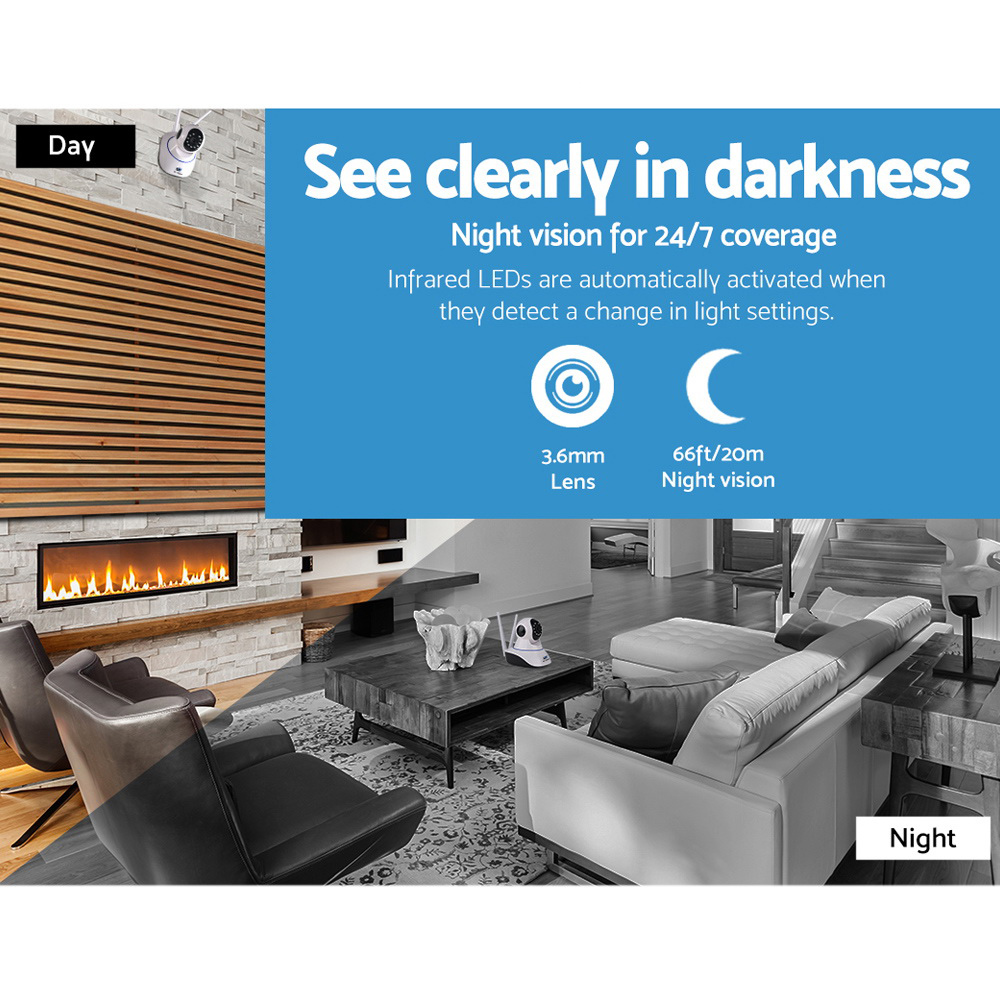 These include HD 2.0 megapixel 1080 resolution, clear day and night vision, smooth pan and tilt monitoring, and P2P remote access support. Motion detection can be customised and with the free app, you can also view the pictures on your phone or computer. Not least, the Camera also has data protection during power outages and up to 128G recording on a TF card for easy playback. Set up is simply plug and play with a Wi-Fi connection and your purchase comes with all the necessary accessories.