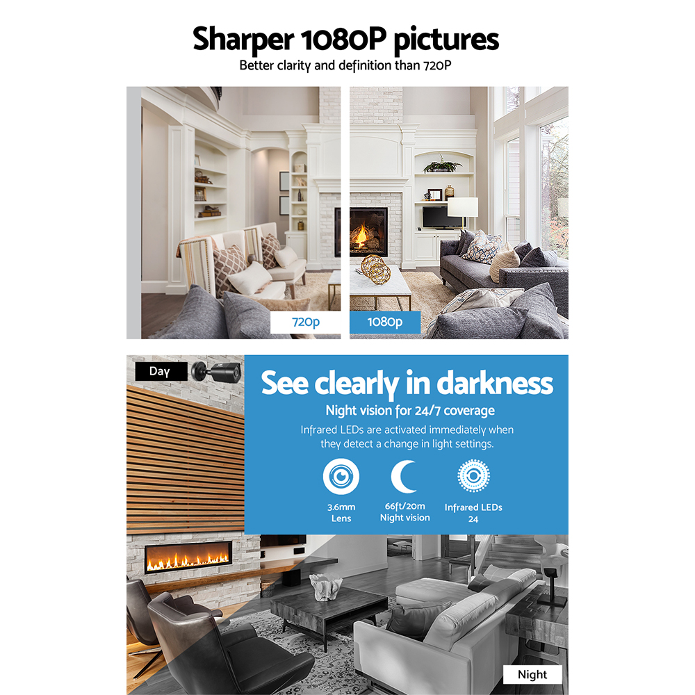 UL-tech CCTV Security System 4CH DVR 4 Cameras 2TB Hard Drive