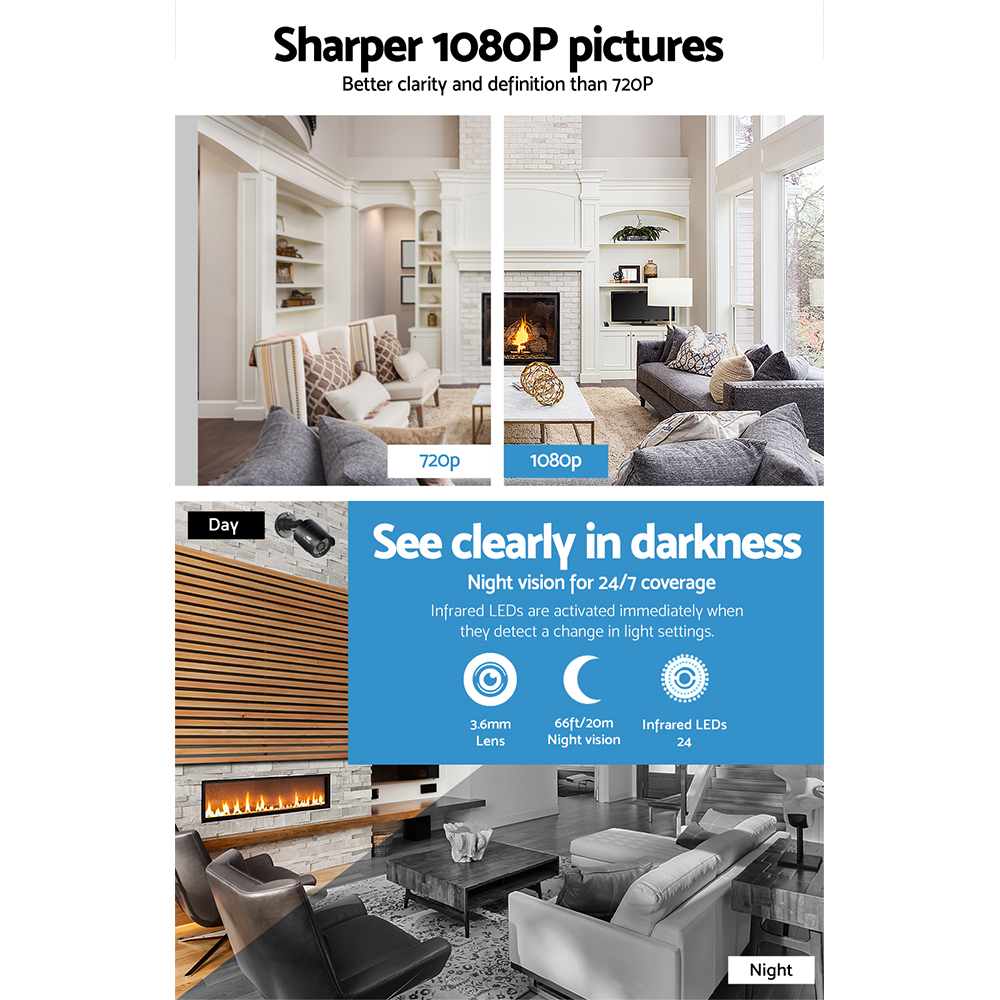 UL-tech CCTV Security System 4CH DVR 4 Cameras 2TB Hard Drive