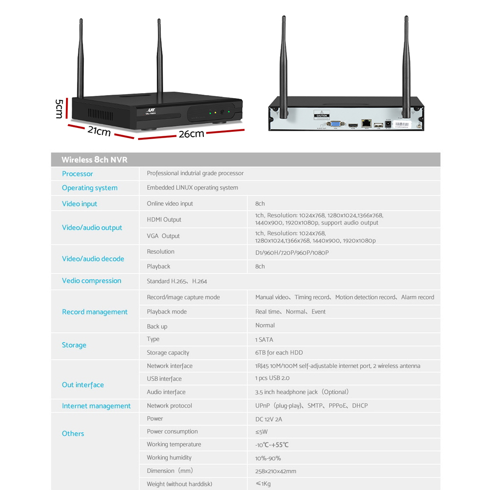 UL-tech Wireless CCTV Security System 8CH NVR 3MP 8 Bullet Cameras 4TB