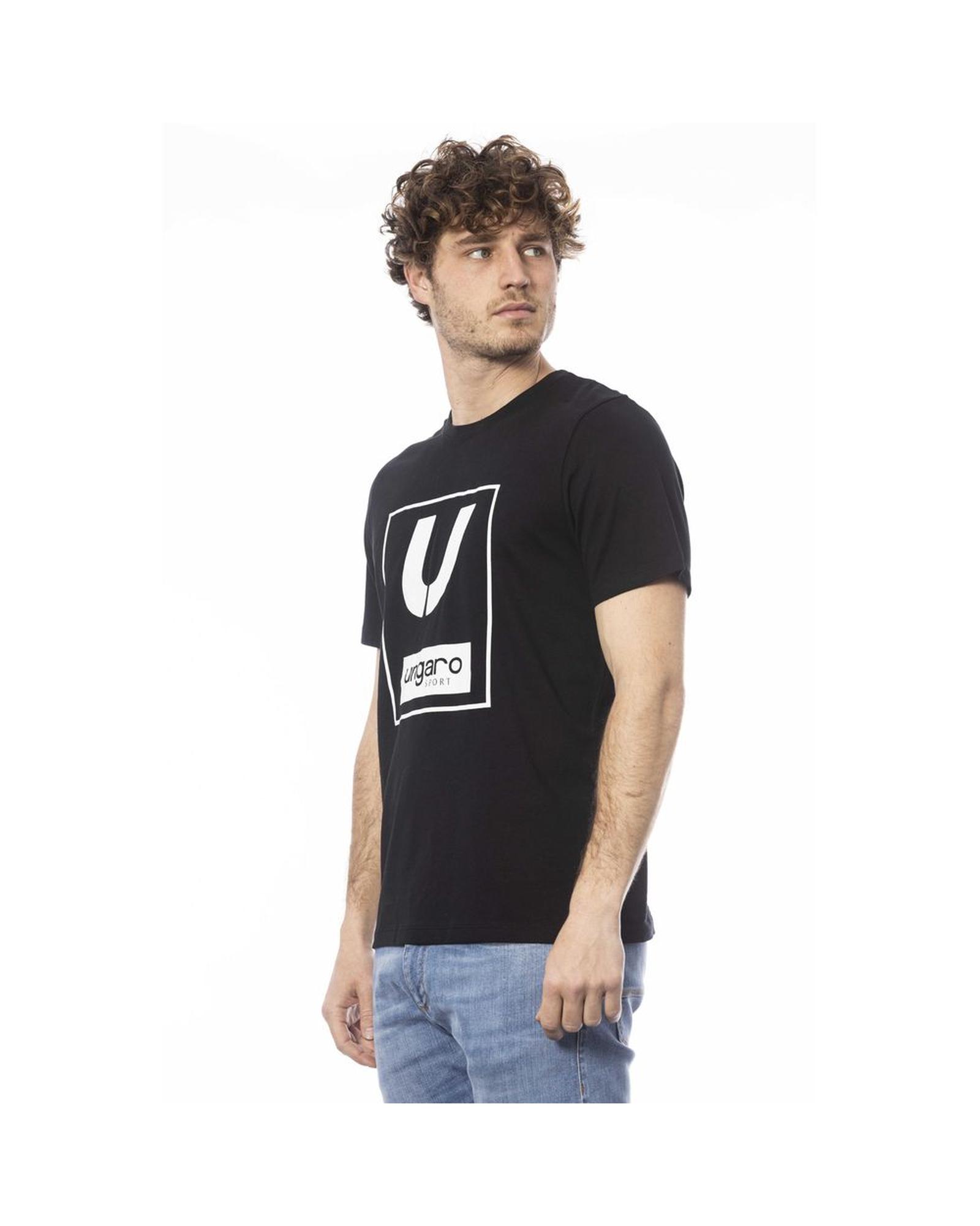 Ungaro Sport Men’s Sleek Black Cotton Crew Neck Tee – XL